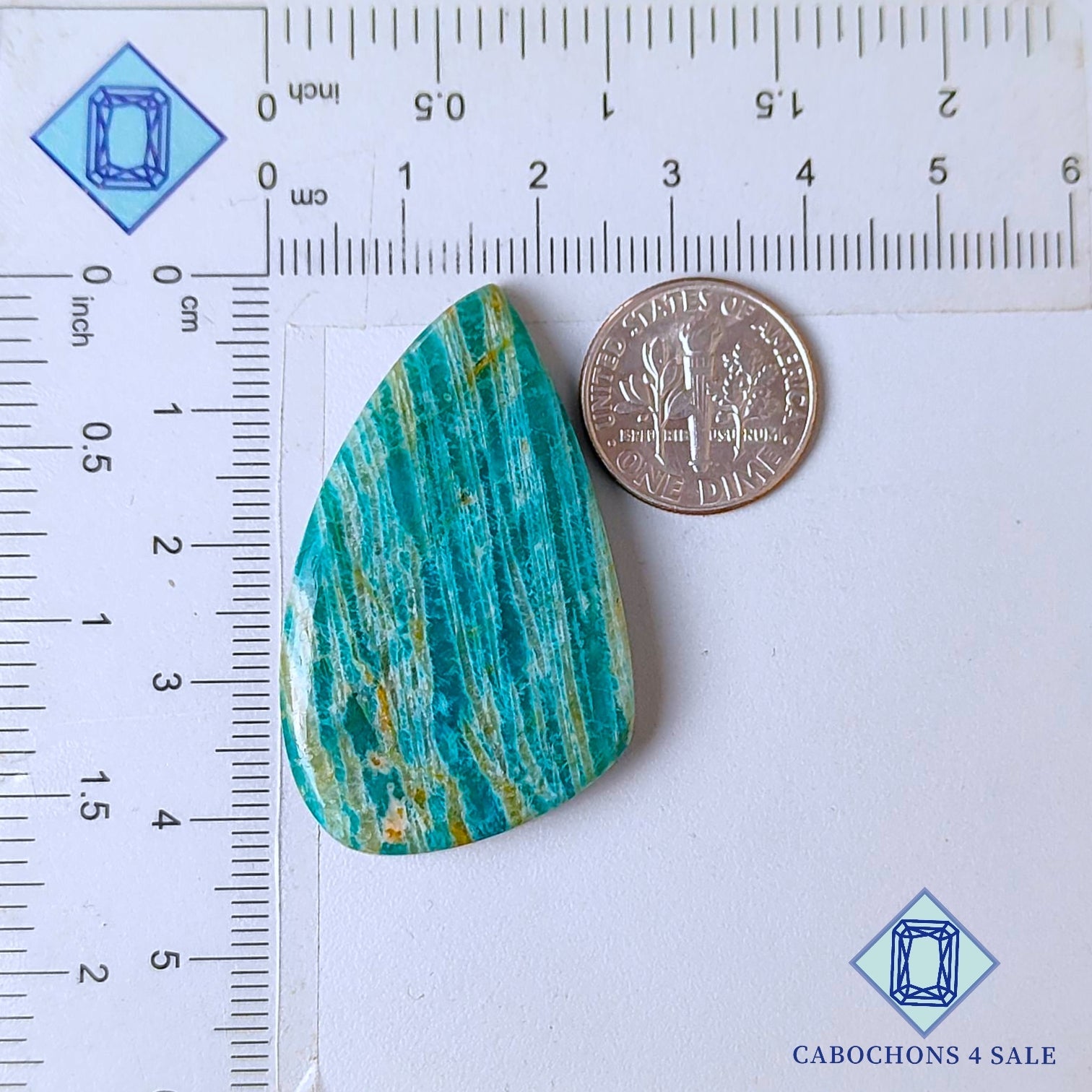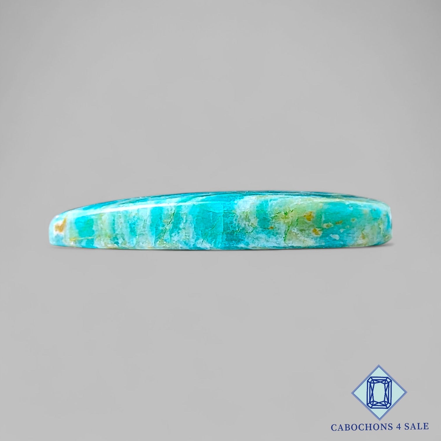 Deslice las imágenes para ver la piedra con la tabla de dimensiones. Esta es una gema de amazonita. El producto es natural, elegante y opaco. La amazonita es de color azul y mide 42 x 25 x 6 mm. La claridad de esta pieza es opaca. El producto está disponible exactamente como se muestra en la imagen: 1 pieza de cabujones de amazonita elegantes certificados por el precio indicado anteriormente.