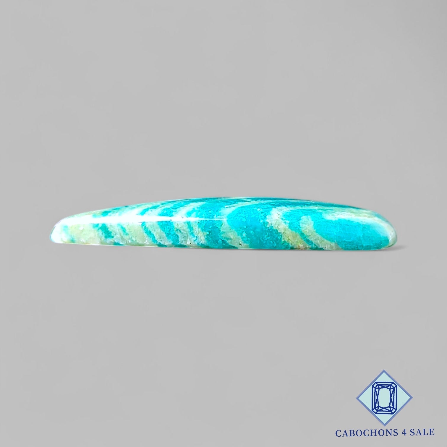 Deslice las imágenes para ver la piedra con la tabla de dimensiones. Esta es una gema de amazonita. El producto es natural, de forma pera y opaco. La amazonita es de color azul y mide 42 x 26 x 6 mm. La claridad de esta pieza es opaca. El producto está disponible exactamente como se muestra en la imagen: 1 pieza de cabujones de amazonita de forma pera certificados por el precio indicado anteriormente.