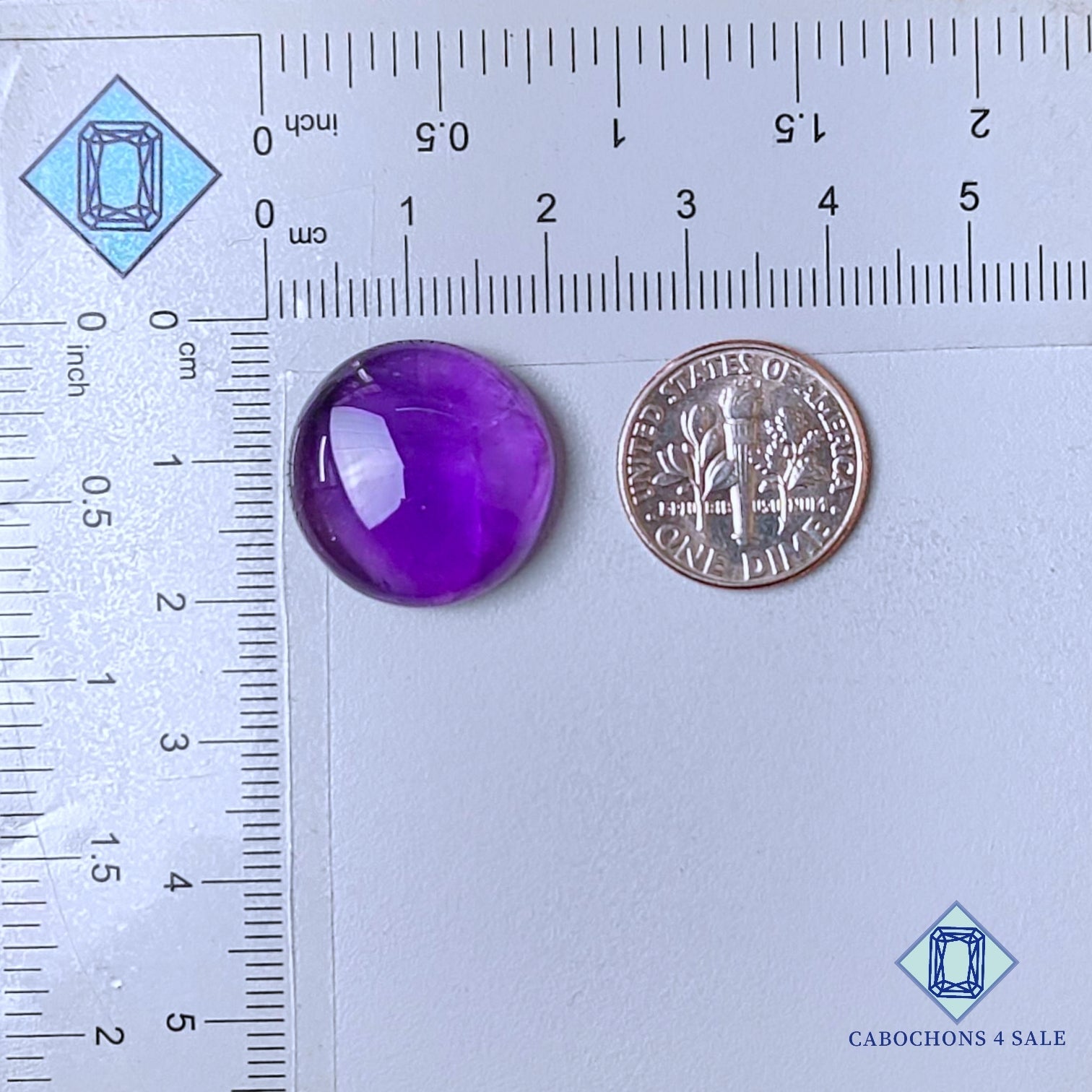 Deslice las imágenes para ver la piedra con la tabla de dimensiones. Esta es una gema de amatista. El producto es natural, redondo y translúcido. Es de color púrpura y mide 19 x 7 mm. La claridad de esta amatista es translúcida. El producto está disponible exactamente como se muestra en la imagen: 1 cabujón redondo de amatista certificado por el precio indicado anteriormente.