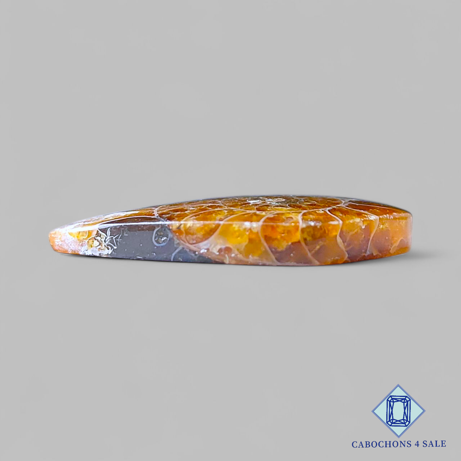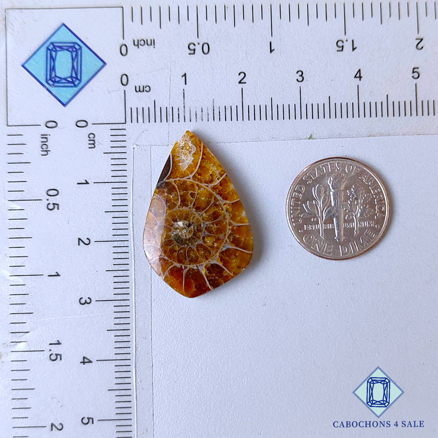 Deslice las imágenes para ver la piedra con la tabla de dimensiones. Esta es una gema de amonita. El producto es natural, de forma pera y opaco. La gema de amonita es de color marrón y mide 28 x 18 x 4 mm. La claridad de esta pieza es opaca. El producto está disponible exactamente como se muestra en la imagen: 1 pieza de cabujones de amonita con certificación de forma pera por el precio indicado anteriormente.