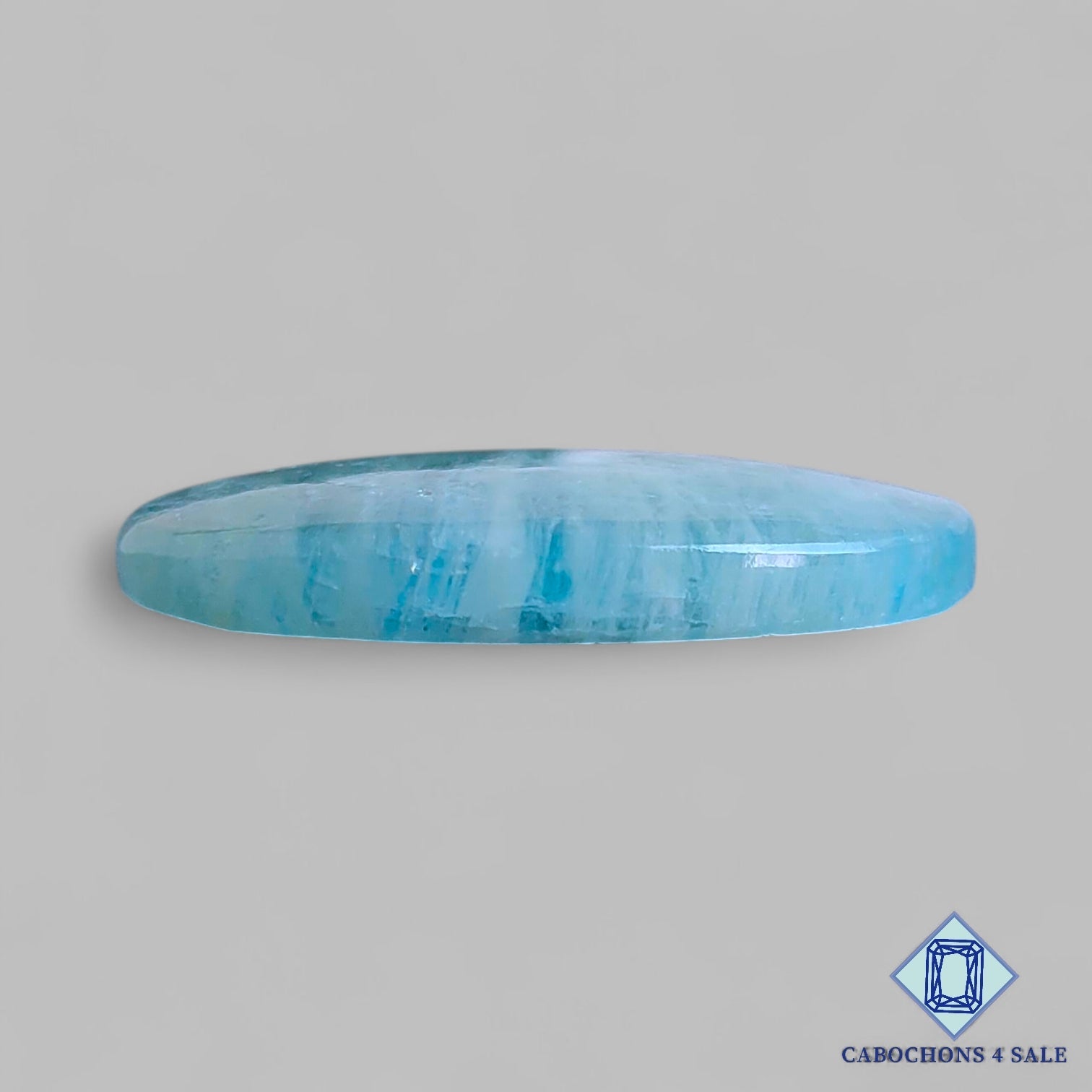 Deslice las imágenes para ver la piedra con la tabla de dimensiones. Esta es una aguamarina natural, ovalada y opaca. Su color azul es de 37 x 25 x 5 mm. La claridad de esta aguamarina es opaca. El producto está disponible exactamente como se muestra en la imagen: 1 cabujón ovalado de aguamarina certificado por el precio indicado anteriormente.