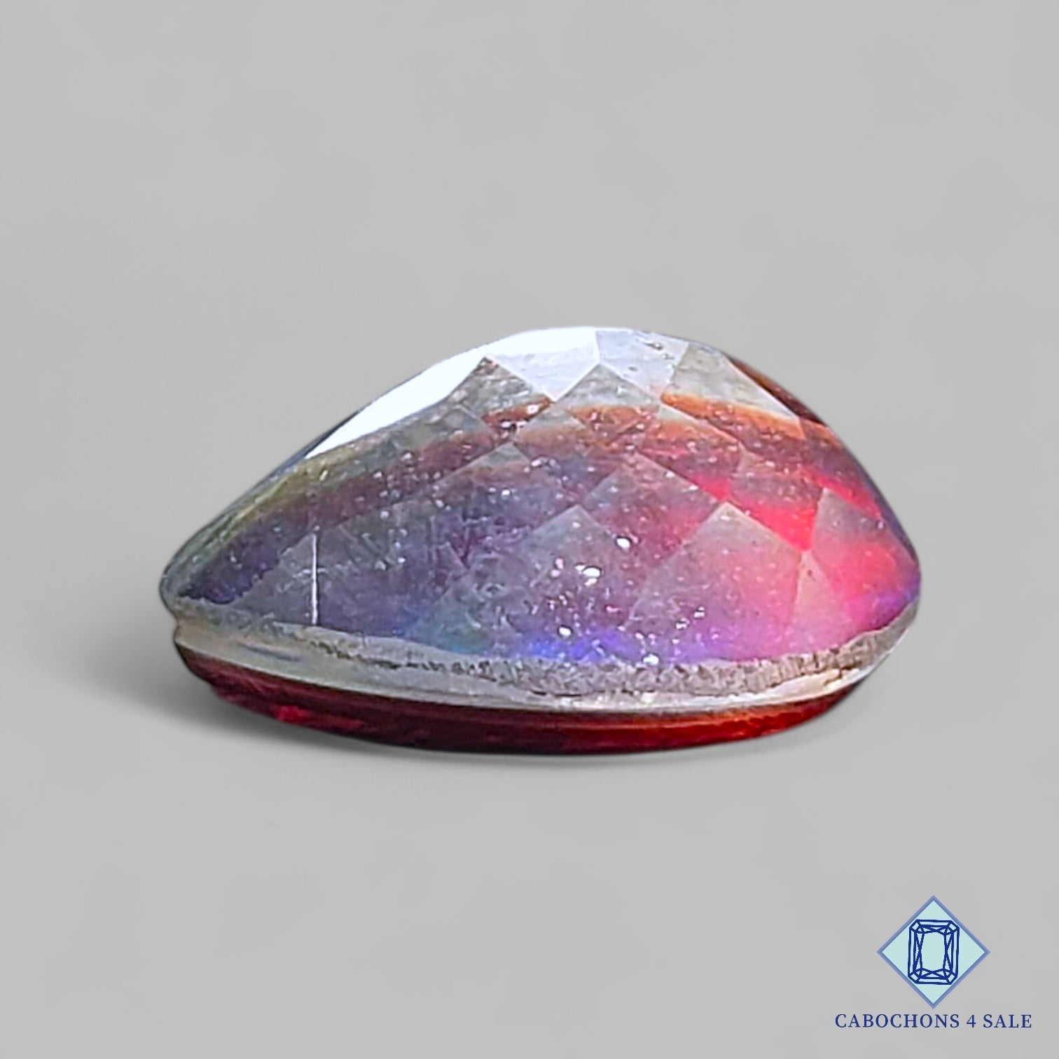 Deslice las imágenes para ver la piedra con la tabla de dimensiones. Esta gema doble de ópalo Aurora y cuarzo cristal es natural, con forma de pera. Es de color rojo y mide 17 x 13 x 7 mm. Su claridad es de dobletes. El producto está disponible exactamente como se muestra en la imagen: 1 pieza doble de ópalo Aurora y cuarzo cristal, con certificación de doblete, al precio indicado anteriormente.