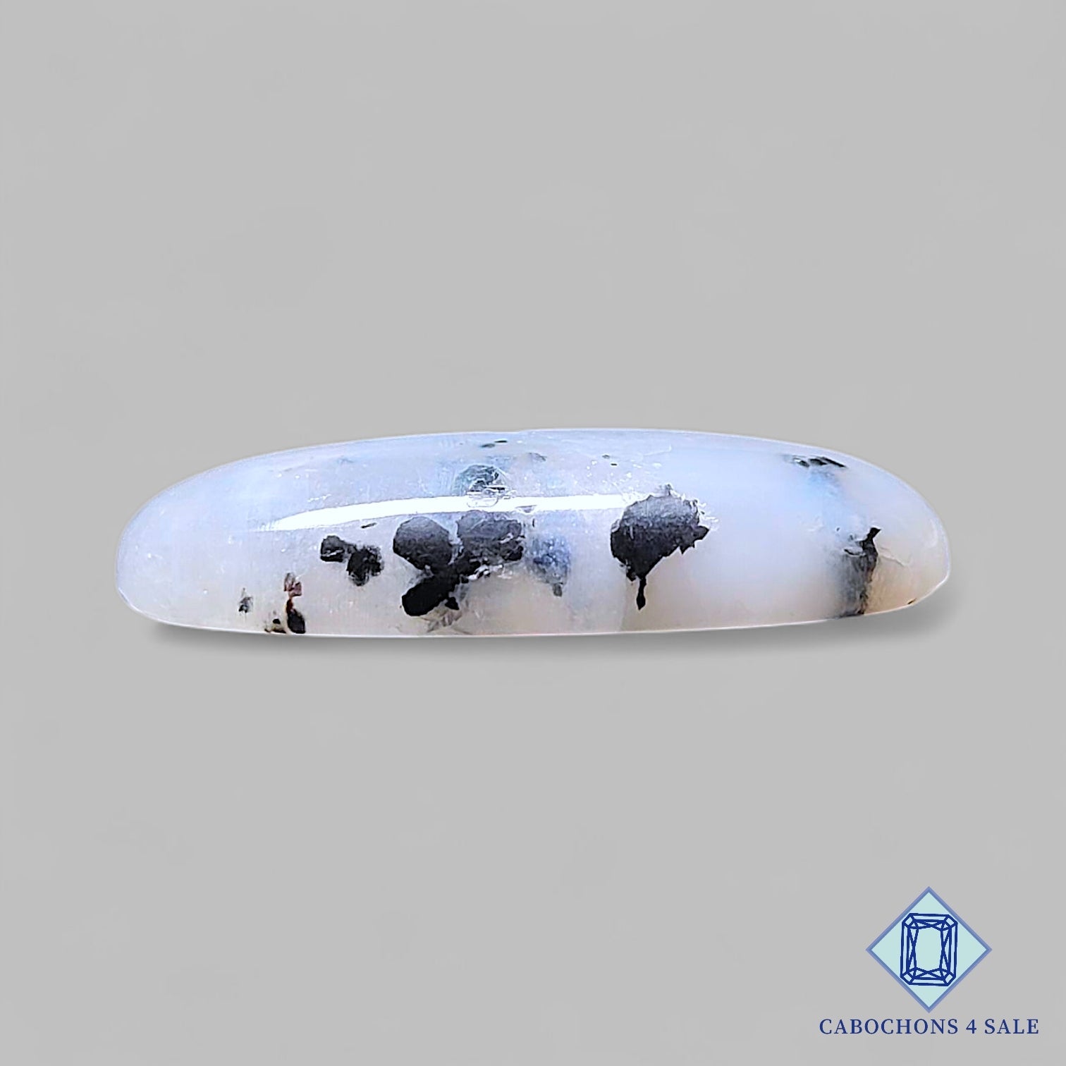 Deslice las imágenes para ver la piedra con la tabla de dimensiones. Esta es una gema de piedra lunar turmalizada negra. El producto es natural, ovalado y translúcido. La piedra lunar turmalizada negra es de color azul y mide 37 x 20 x 7 mm. La claridad de esta piedra lunar turmalizada negra es translúcida. El producto está disponible exactamente como se muestra en la imagen: 1 pieza de cabujones ovalados de piedra lunar turmalizada negra certificados por el precio indicado anteriormente.