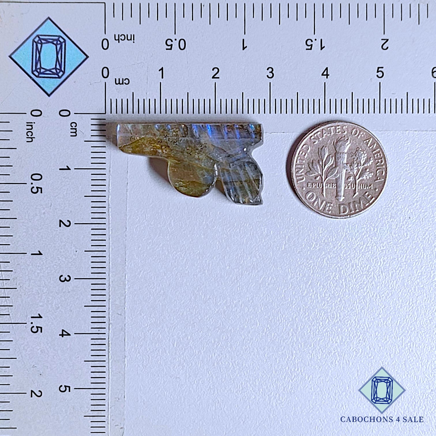 Deslice las imágenes para ver la piedra con la tabla de dimensiones. Esta es una labradorita azul. El producto es natural, elegante y translúcido. La labradorita azul es de color azul y mide 26 x 15 x 5 mm. La claridad de esta labradorita azul es translúcida. El producto está disponible exactamente como se muestra en la imagen: 1 pieza de labradorita azul con certificado Fancy Carvings por el precio indicado anteriormente.