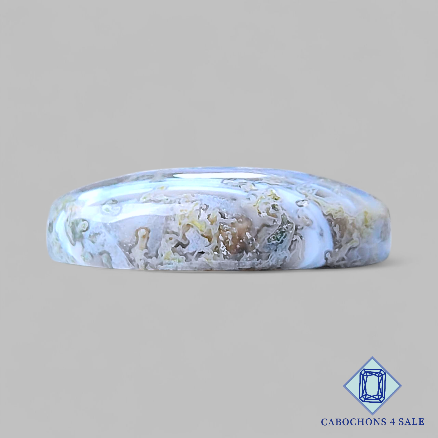 Deslice las imágenes para ver la piedra con la tabla de dimensiones. Esta es una gema de ágata musgosa azul. El producto es natural, ovalado y opaco. Es de color azul y mide 27 x 23 x 7 mm. La claridad de esta pieza es opaca. El producto está disponible exactamente como se muestra en la imagen: 1 cabujón ovalado de ágata musgosa azul certificado por el precio indicado anteriormente.