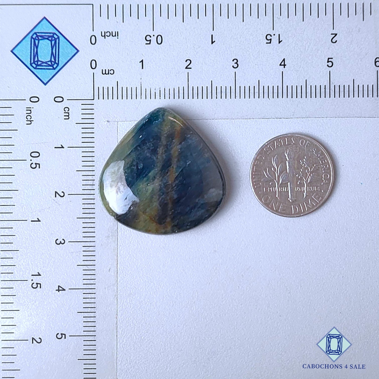 Deslice las imágenes para ver la piedra con la tabla de dimensiones. Esta es una gema de zafiro azul. El producto es natural, de forma pera y translúcido. Es una gema de zafiro azul de color azul con un tamaño de 27 x 27 x 6 mm. La claridad de esta pieza de zafiro azul es translúcida. El producto está disponible exactamente como se muestra en la imagen: 1 pieza de zafiro azul con cabujones de forma pera certificados por el precio indicado anteriormente.