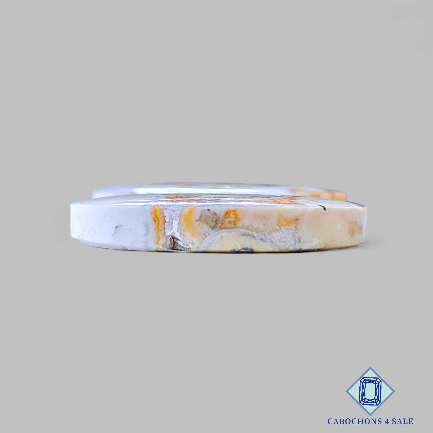 Deslice las imágenes para ver la piedra con la tabla de dimensiones. Esta es una gema de jaspe cobra. El producto es natural, ovalado y opaco. El jaspe cobra es amarillo y mide 27 x 15 x 5 mm. La claridad de esta pieza es opaca. El producto está disponible exactamente como se muestra en la imagen: 1 par de jaspe cobra ovalado certificado por el precio indicado anteriormente.