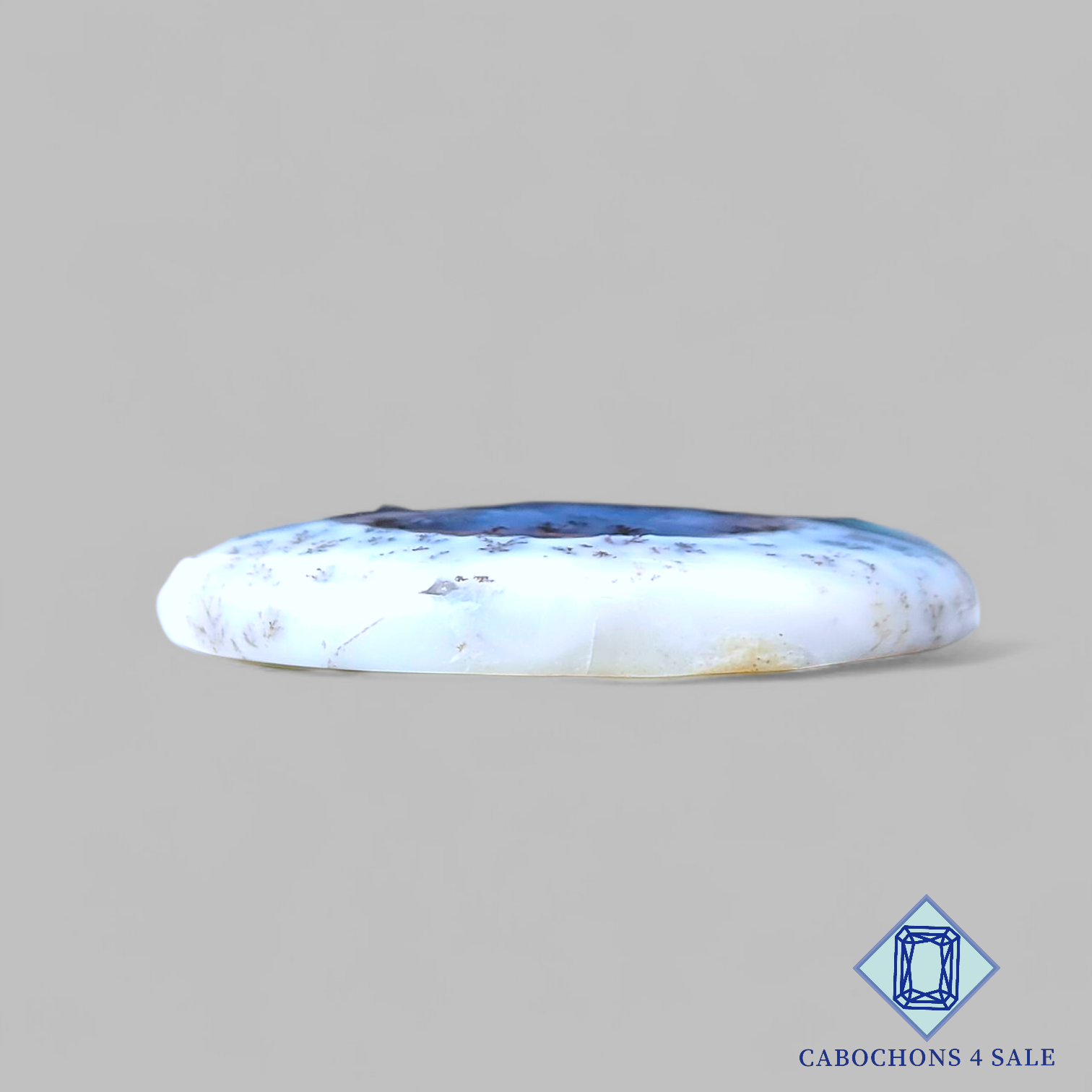 Deslice las imágenes para ver la piedra con la tabla de dimensiones. Esta es una gema de ágata dendrítica. El producto es una gema natural, ovalada y opaca de color blanco con un tamaño de 37 x 26 x 6 mm. La claridad de esta pieza de ágata dendrítica es opaca. El producto está disponible exactamente como se muestra en la imagen: 1 pieza de cabujones ovalados de ágata dendrítica certificados por el precio indicado anteriormente.