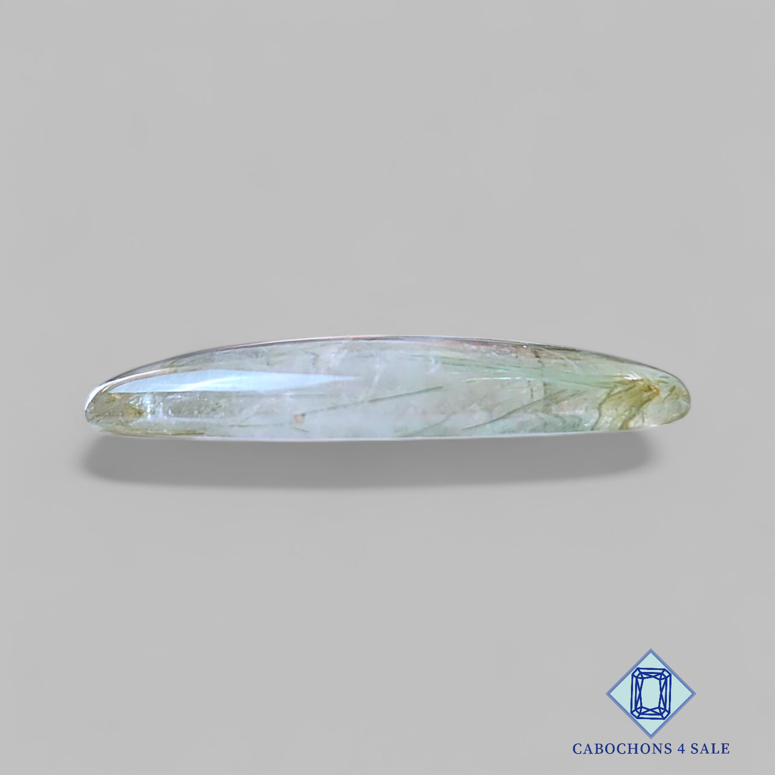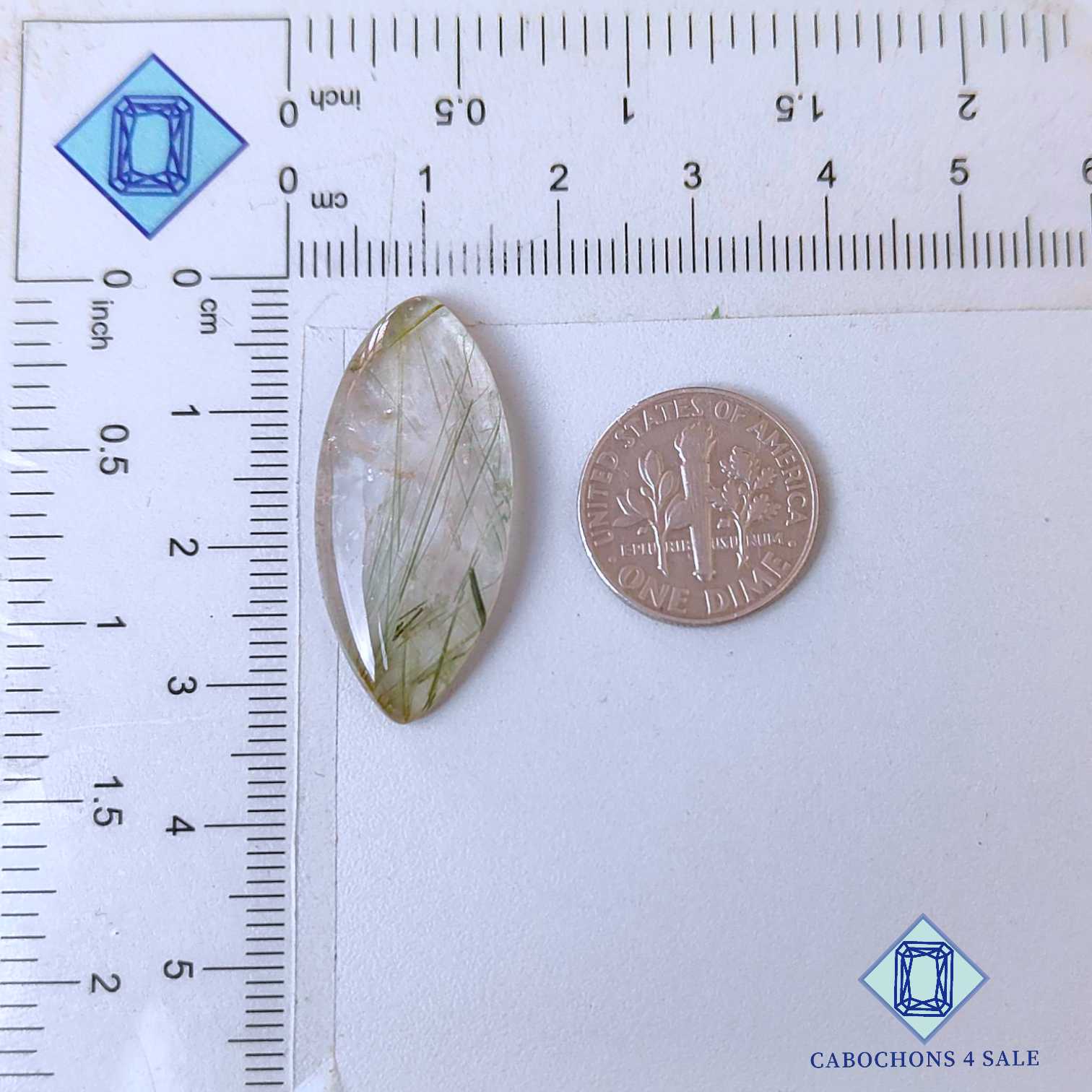 Deslice las imágenes para ver la piedra con la tabla de dimensiones. Esta es una gema de cuarzo rutilo verde. El producto es natural, marquesa y translúcido. Es de color incoloro y mide 31 x 14 x 5 mm. La claridad de esta pieza de cuarzo rutilo verde es translúcida. El producto está disponible exactamente como se muestra en la imagen: 1 pieza de cabujones marquesa de cuarzo rutilo verde certificados por el precio indicado anteriormente.