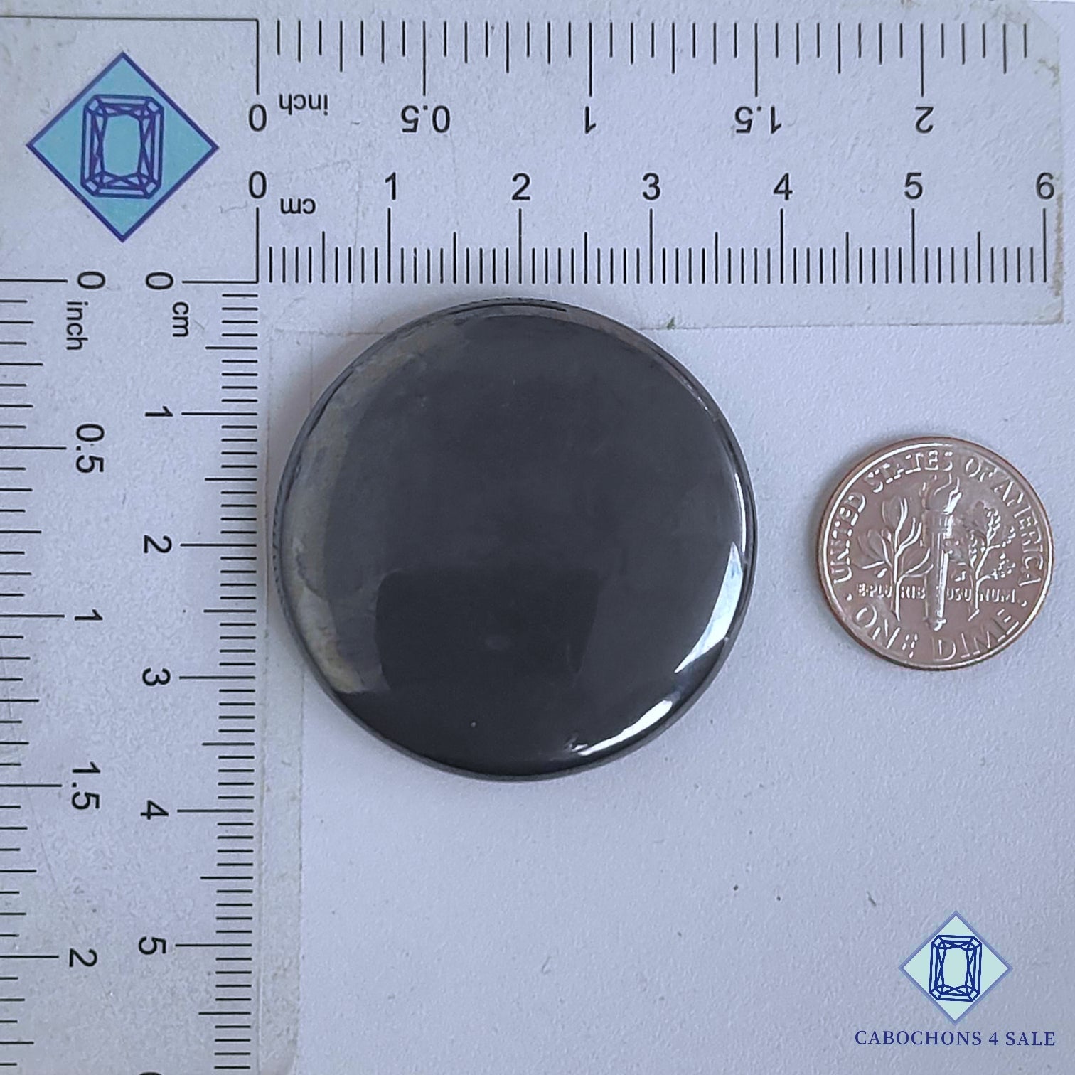 Deslice las imágenes para ver la piedra con la tabla de dimensiones. Esta es una gema de hematita. El producto es natural, redondo y opaco. La gema de hematita es gris y mide 36 x 5 mm. La claridad de esta pieza de hematita es opaca. El producto está disponible exactamente como se muestra en la imagen: 1 pieza de cabujones redondos de hematita certificados por el precio indicado anteriormente.