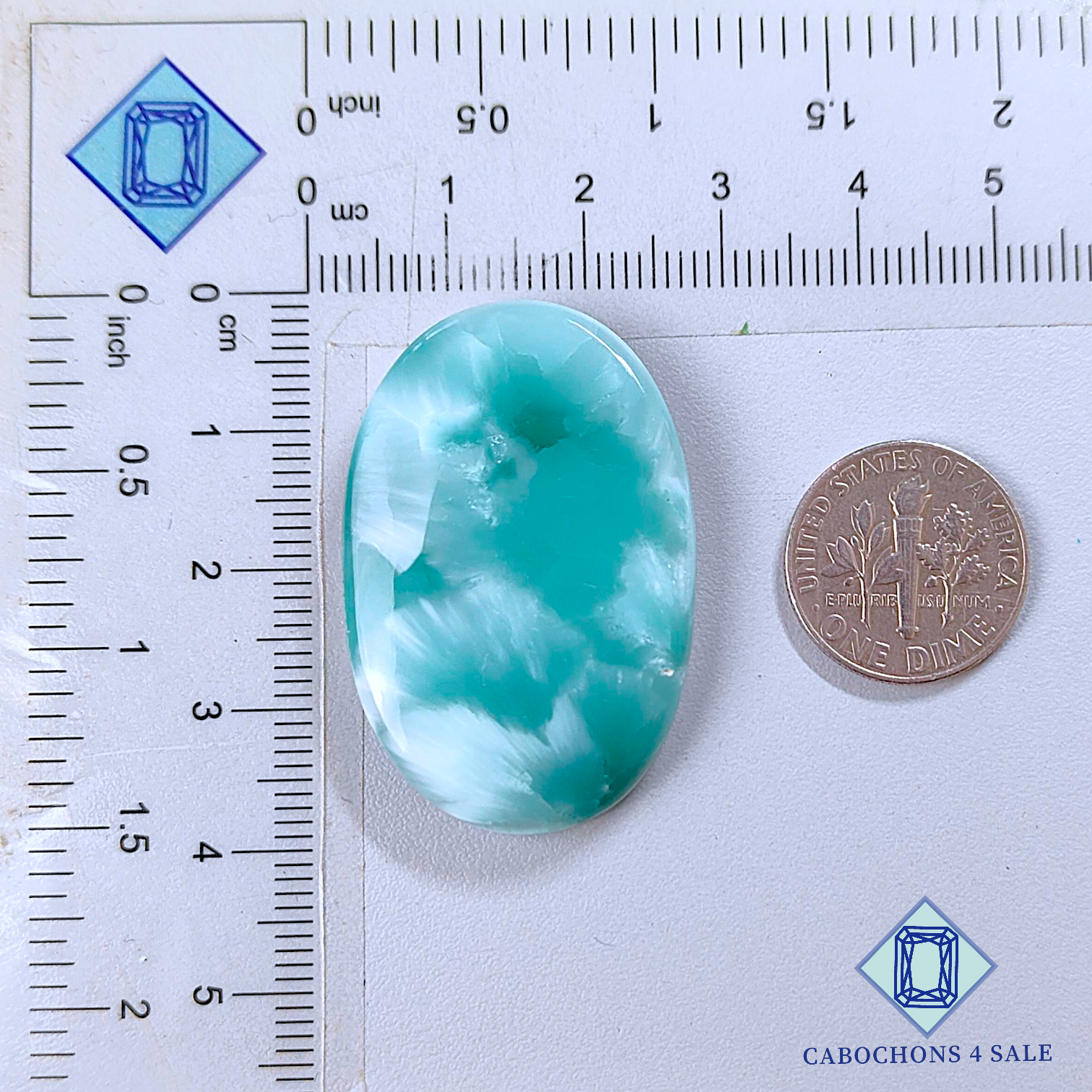 Deslice las imágenes para ver la piedra con la tabla de dimensiones. Esta es una gema hemimorfita. El producto es natural, ovalado y opaco. La gema hemimorfita es de color azul y mide 38 x 25 x 6 mm. La claridad de esta pieza es opaca. El producto está disponible exactamente como se muestra en la imagen: 1 pieza de cabujones ovalados de hemimorfita certificados por el precio indicado anteriormente.