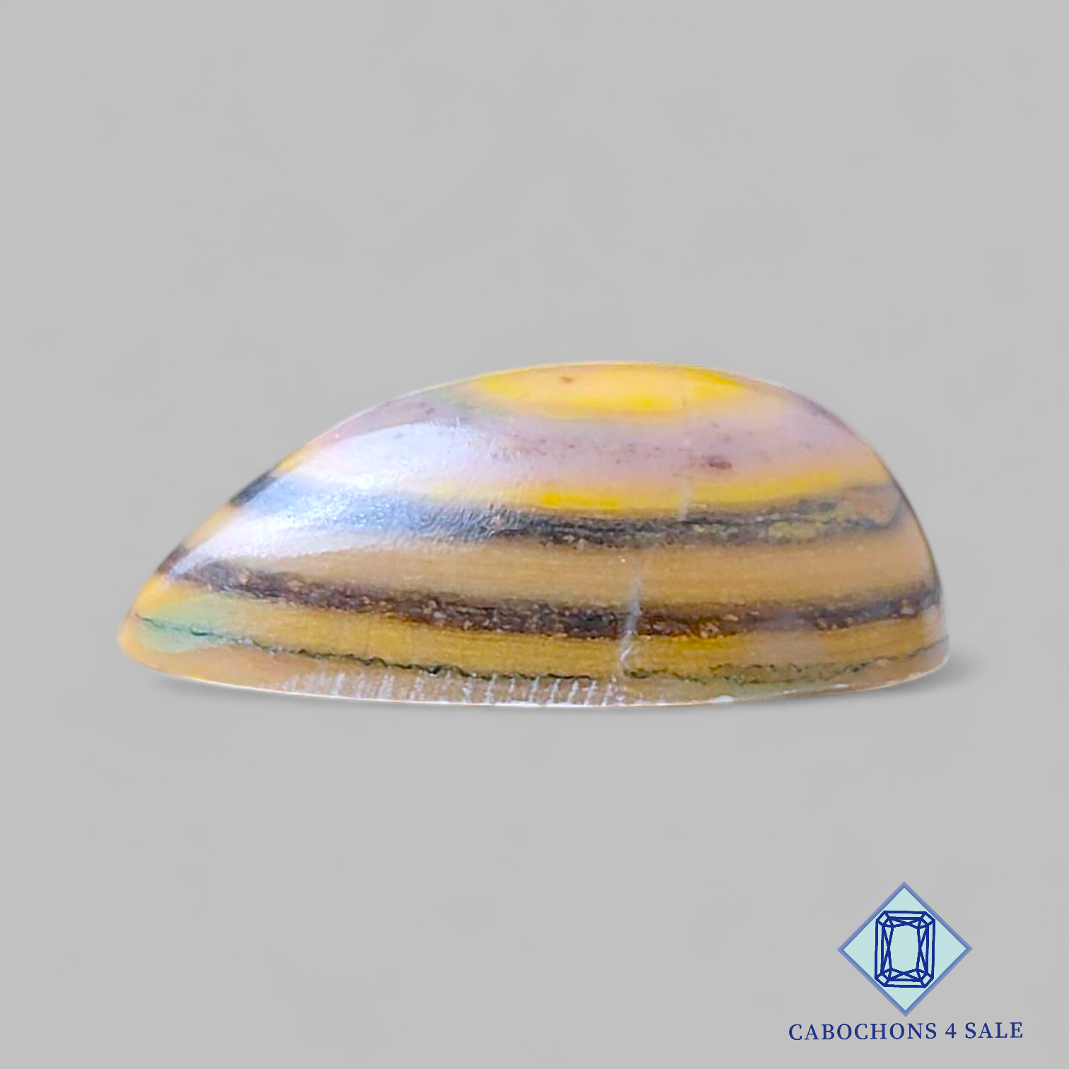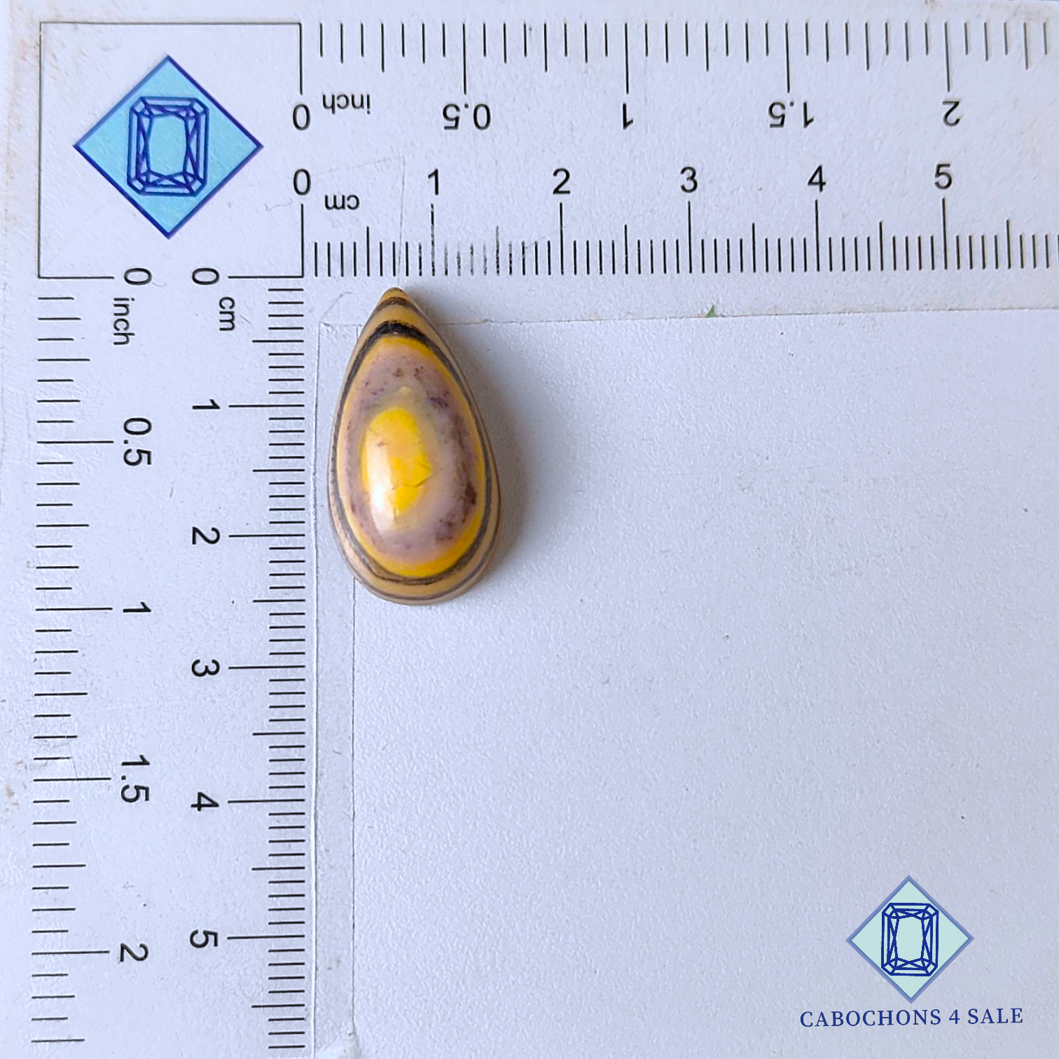 Deslice las imágenes para ver la piedra con la tabla de dimensiones. Esta es una gema de jaspe nogal. El producto es natural, de forma pera y opaco. La gema de jaspe nogal es de color amarillo y mide 24 x 13 x 9 mm. La claridad de esta pieza de jaspe nogal es opaca. El producto está disponible exactamente como se muestra en la imagen: 1 pieza de jaspe nogal con cabujones en forma de pera, certificada por el precio indicado anteriormente.