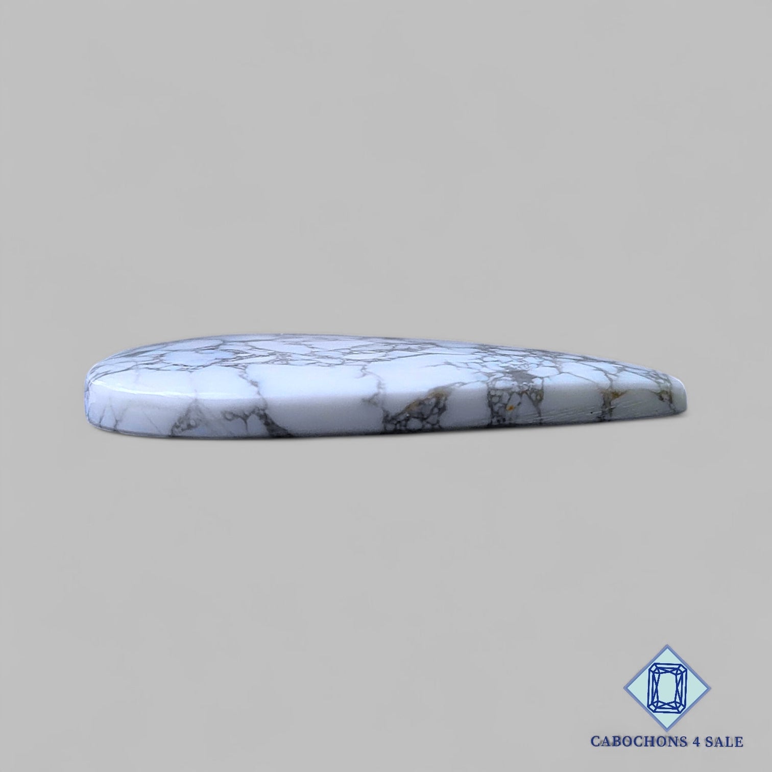 Deslice las imágenes para ver la piedra con la tabla de dimensiones. Esta es una gema de howlita. El producto es natural, de forma pera y translúcida. La howlita es blanca y mide 45 x 33 x 5 mm. La claridad de esta pieza es translúcida. El producto está disponible exactamente como se muestra en la imagen: 1 pieza de cabujones de howlita de forma pera con certificación por el precio indicado anteriormente.