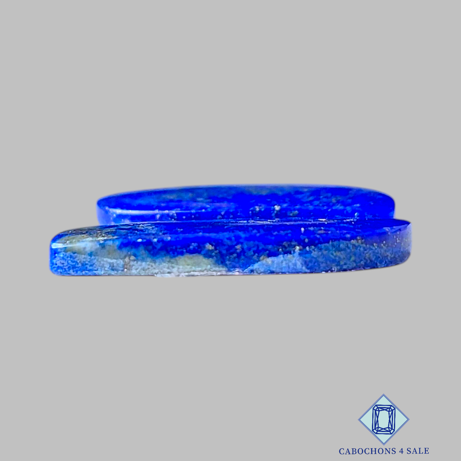 Deslice las imágenes para ver la piedra con la tabla de dimensiones. Esta es una gema de lapislázuli. El producto es natural, de fantasía y opaco. La gema de lapislázuli es de color azul y mide 21 x 11 x 3 mm. La claridad de esta pieza de lapislázuli es opaca. El producto está disponible exactamente como se muestra en la imagen: 1 par de lapislázuli de fantasía certificado por el precio indicado anteriormente.