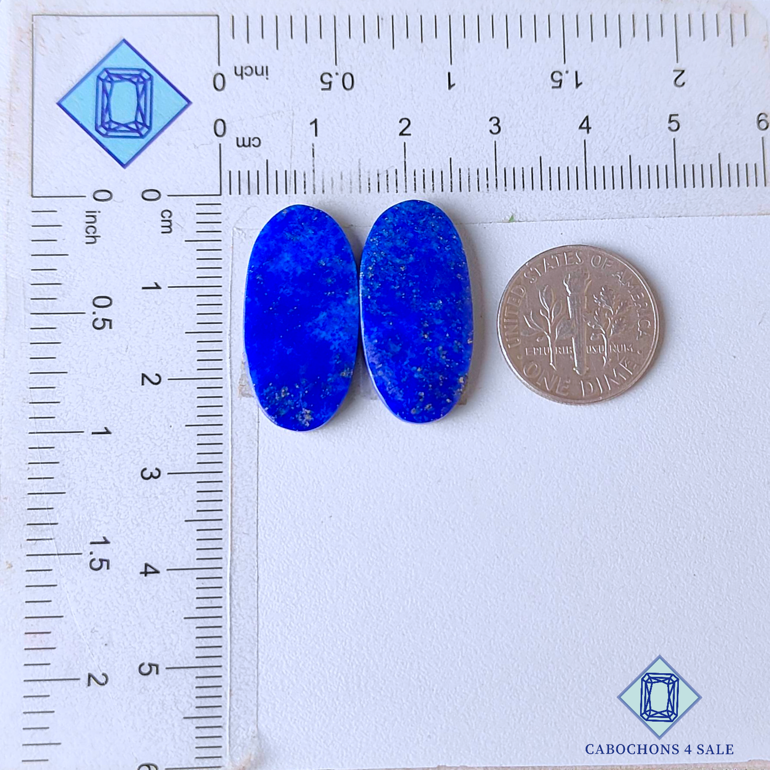 Deslice las imágenes para ver la piedra con la tabla de dimensiones. Esta es una gema de lapislázuli. El producto es natural, ovalado y opaco. Es una gema de lapislázuli azul con un tamaño de 24 x 12 x 3 mm. La claridad de esta pieza es opaca. El producto está disponible exactamente como se muestra en la imagen: 1 par de lapislázuli ovalados certificados por el precio indicado anteriormente.