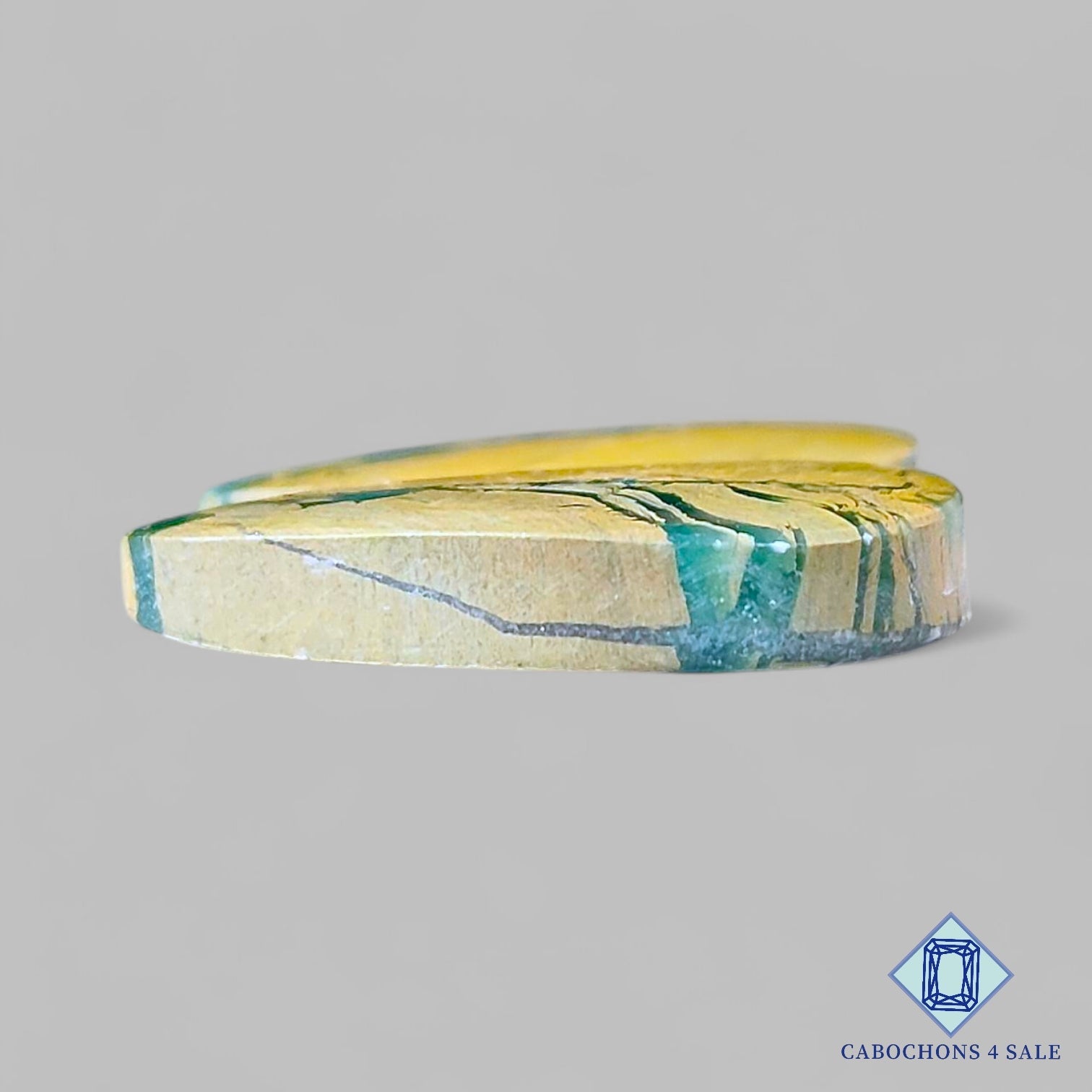Deslice las imágenes para ver la piedra con la tabla de dimensiones. Esta es una gema de mariposita. El producto es natural, de forma pera y opaco. La gema de mariposita es amarilla y mide 25 x 15 x 5 mm. La claridad de esta pieza es opaca. El producto está disponible exactamente como se muestra en la imagen: 1 par de mariposita de forma pera certificada por el precio indicado anteriormente.