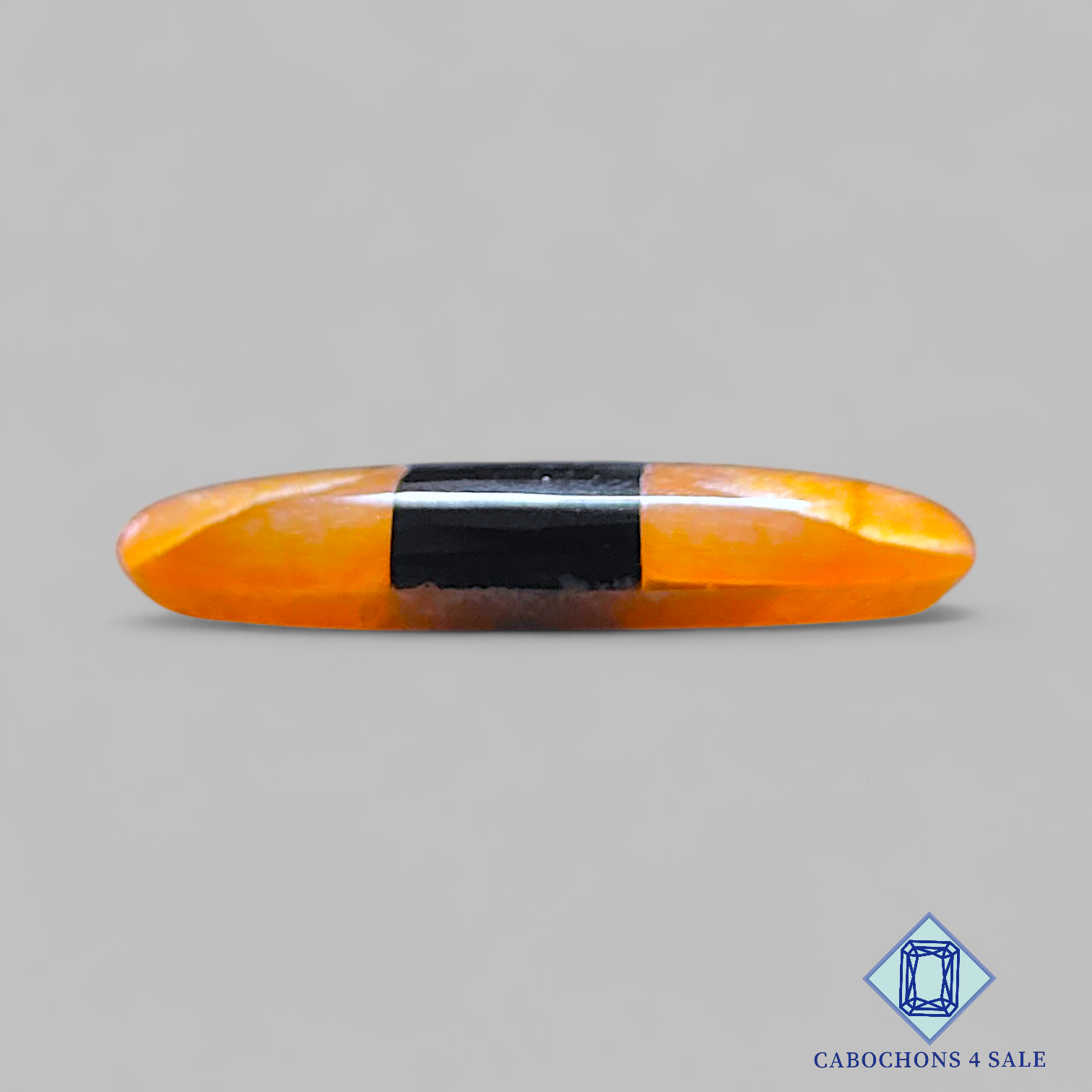 Desliza las imágenes para ver la piedra con la tabla de dimensiones. Esta gema es una piedra solar arcoíris enrejada Meteor Shower con dobletes de ónix negro. Es una gema natural ovalada de dobletes. Es de color naranja y mide 32 x 14 x 5 mm. Su claridad es doble. El producto está disponible exactamente como se muestra en la imagen: 1 pieza de dobletes ovalados de piedra solar arcoíris enrejada Meteor Shower con dobletes de ónix negro, certificada por el precio indicado anteriormente.