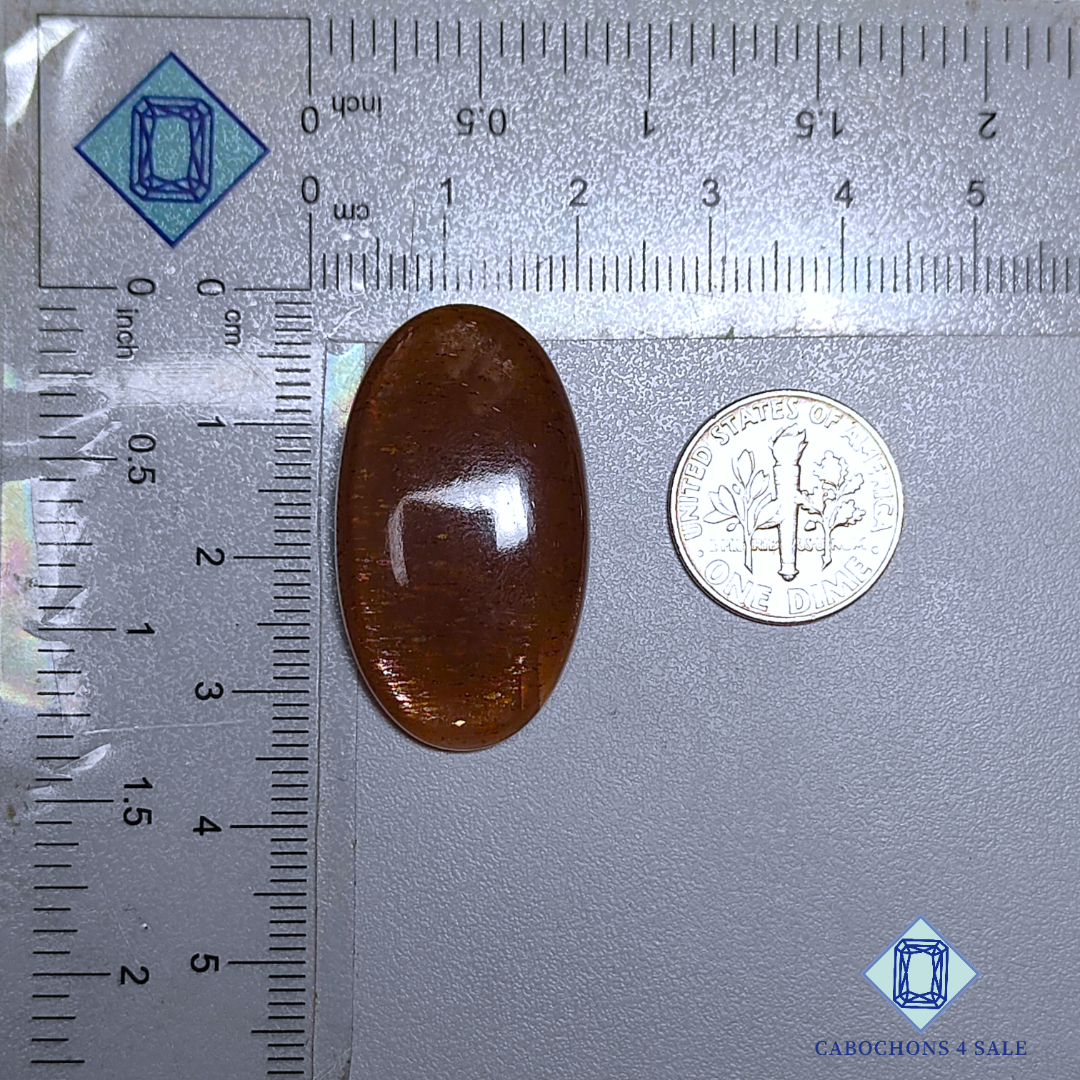 Deslice las imágenes para ver la piedra con la tabla de dimensiones. Esta es una gema de piedra solar arcoíris reticulada de lluvia de meteoros. El producto es natural, ovalado y translúcido. La piedra solar arcoíris reticulada de lluvia de meteoros es marrón y mide 33 x 19 x 6 mm. La claridad de esta piedra solar arcoíris reticulada es translúcida. El producto está disponible exactamente como se muestra en la imagen: 1 pieza de cabujones ovalados de piedra solar arcoíris reticulada de lluvia de meteoros, certificada por el precio indicado anteriormente.