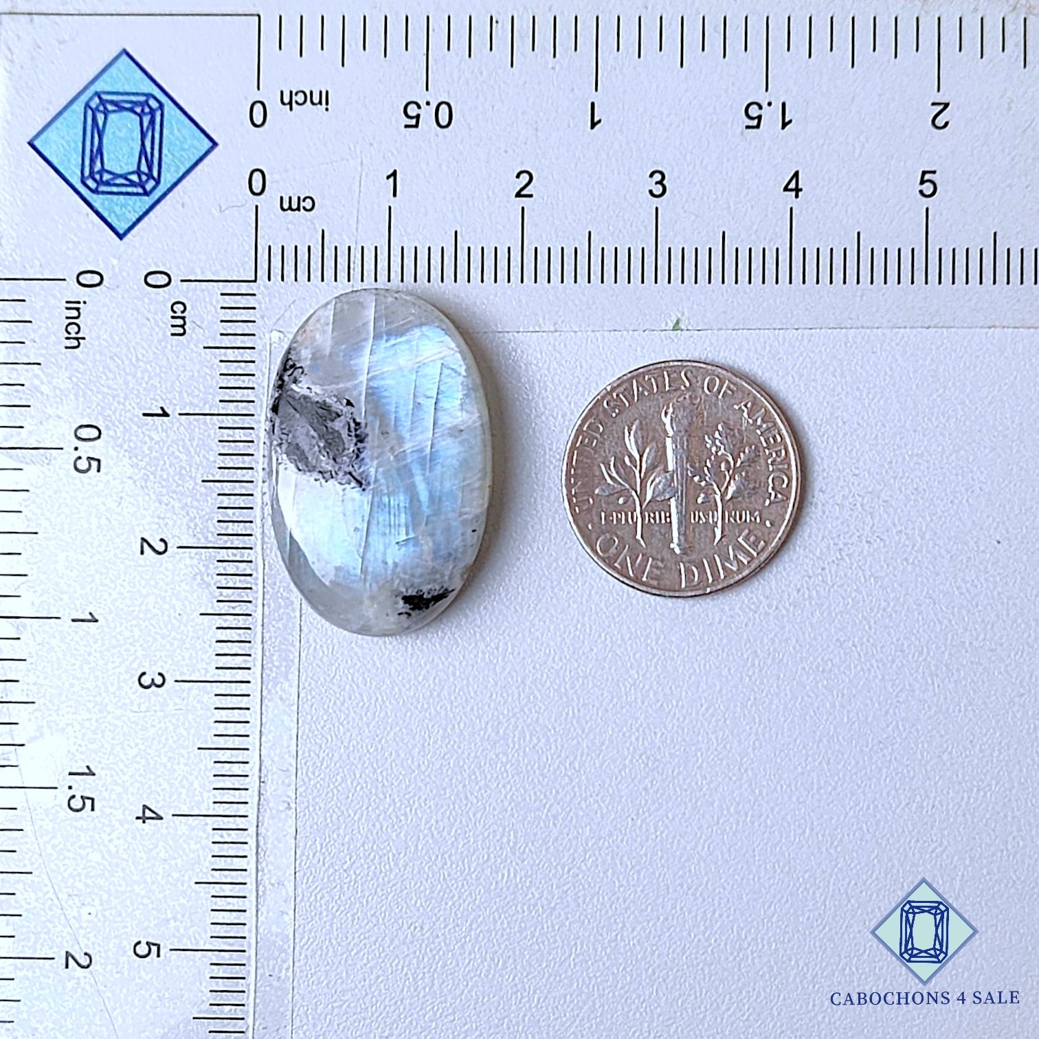 Deslice las imágenes para ver la piedra con la tabla de dimensiones. Esta es una gema de piedra lunar. El producto es natural, ovalado y translúcido. La piedra lunar es azul y mide 25 x 17 x 6 mm. La claridad de esta piedra lunar es translúcida. El producto está disponible exactamente como se muestra en la imagen: 1 pieza de cabujones ovalados de piedra lunar certificados por el precio indicado anteriormente.