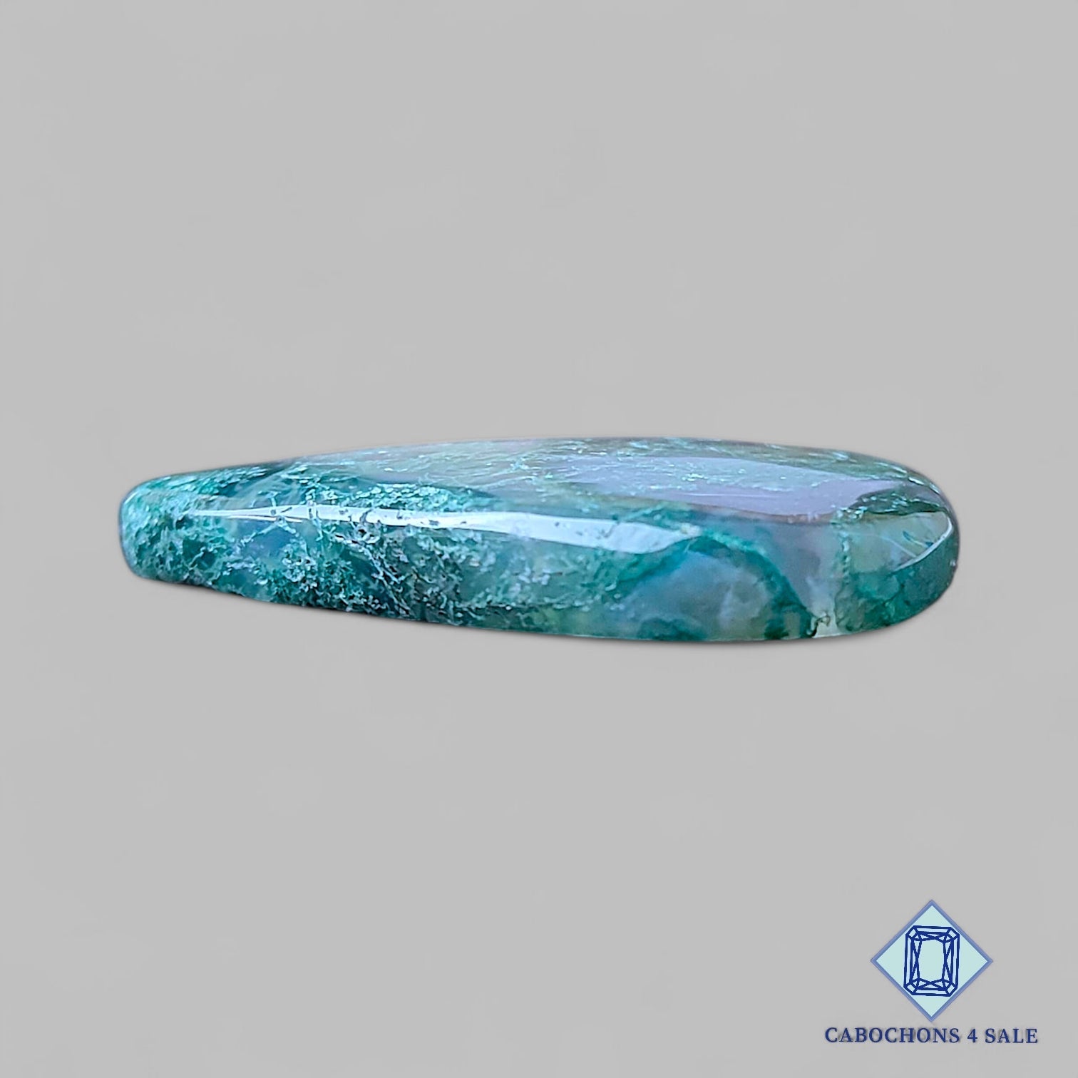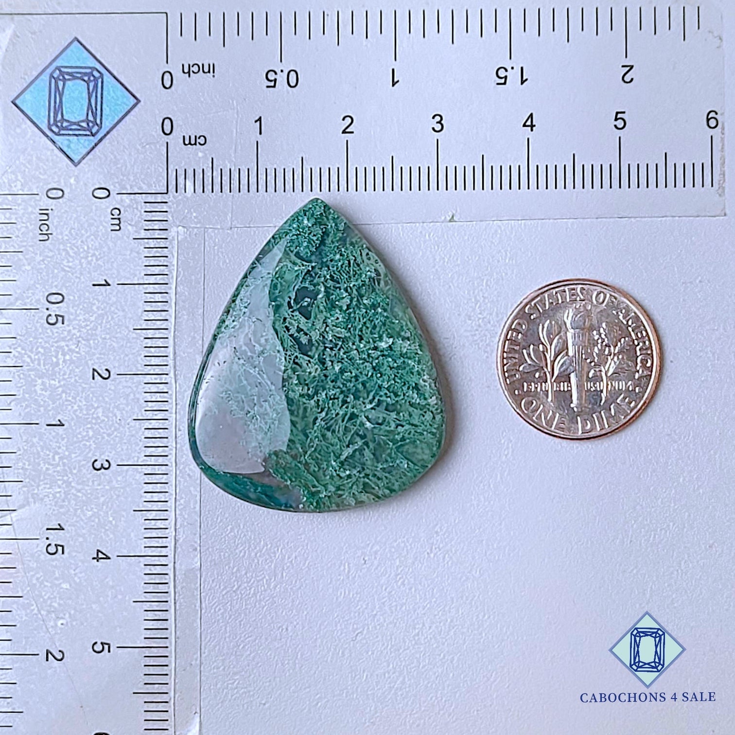 Deslice las imágenes para ver la piedra con la tabla de dimensiones. Esta es una gema de ágata musgosa. El producto es una gema natural de ágata musgosa translúcida de color verde con un tamaño de 34 x 28 x 5 mm. La claridad de esta pieza es translúcida. El producto está disponible exactamente como se muestra en la imagen: 1 pieza de cabujones de ágata musgosa con certificación de pera por el precio indicado anteriormente.
