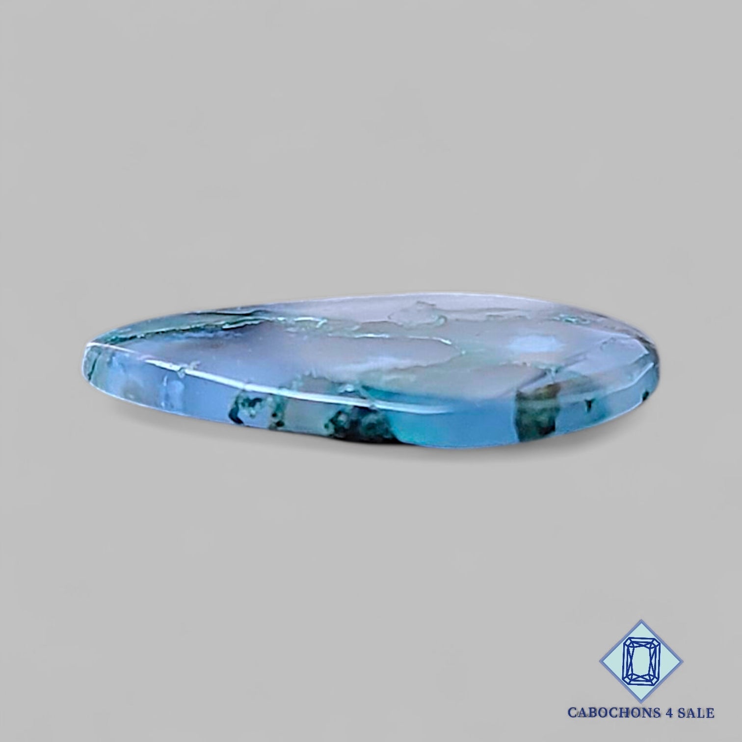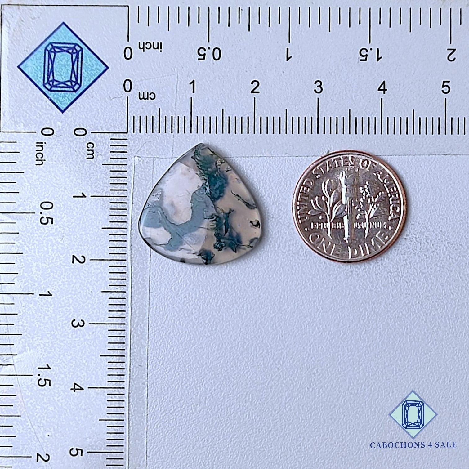 Deslice las imágenes para ver la piedra con la tabla de dimensiones. Esta es una gema de ágata musgosa. El producto es una gema natural de ágata musgosa translúcida de color verde con un tamaño de 19 x 19 x 2 mm. La claridad de esta pieza es translúcida. El producto está disponible exactamente como se muestra en la imagen: 1 pieza de cabujones de ágata musgosa con certificación de pera por el precio indicado anteriormente.