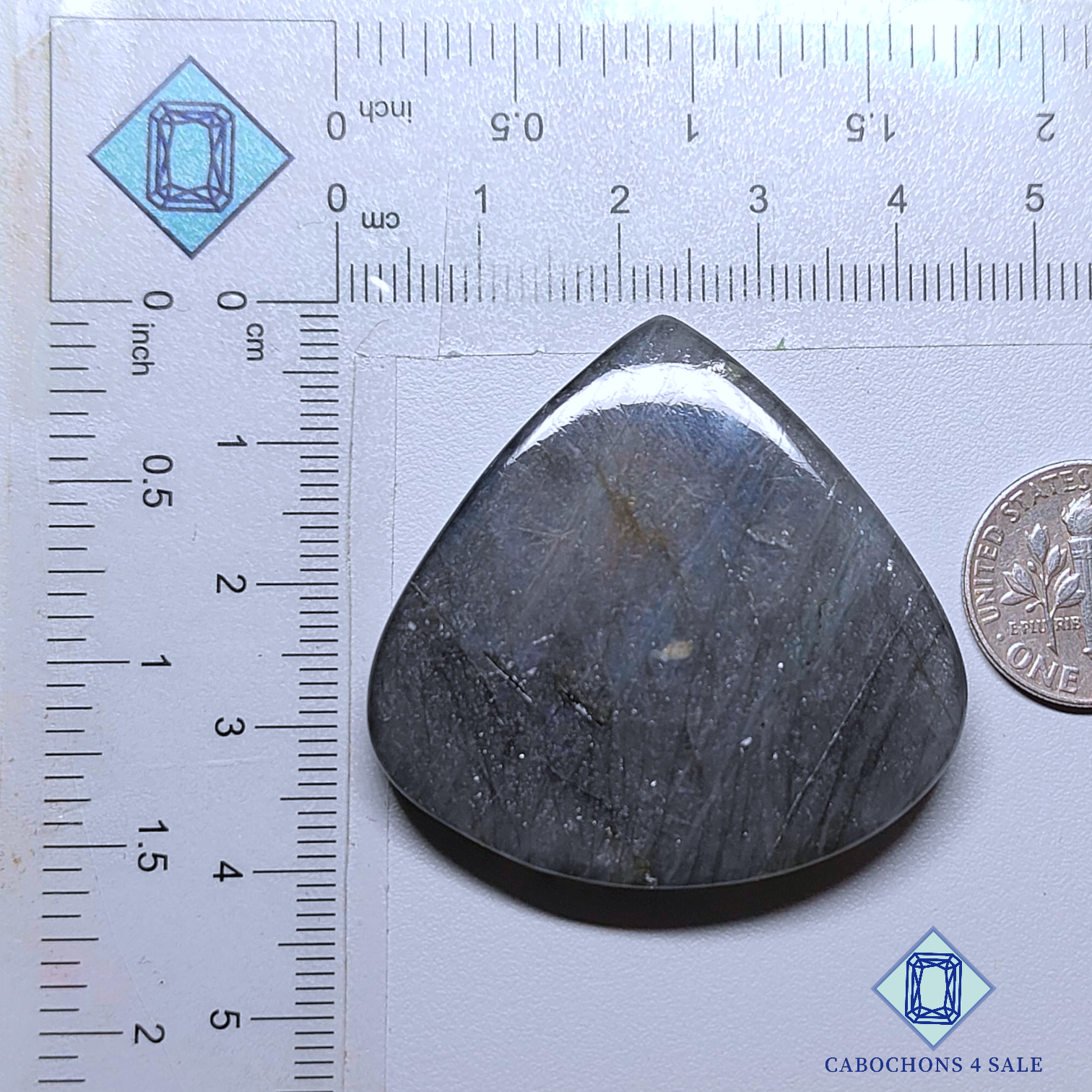Deslice las imágenes para ver la piedra con la tabla de dimensiones. Esta es una gema de labradorita multicolor. El producto es natural, de forma pera y translúcida. La gema de labradorita multicolor tiene un tamaño de 40 x 41 x 7 mm. La claridad de esta pieza es translúcida. El producto está disponible exactamente como se muestra en la imagen: 1 pieza de cabujones de labradorita multicolor en forma de pera, certificada por el precio indicado anteriormente.