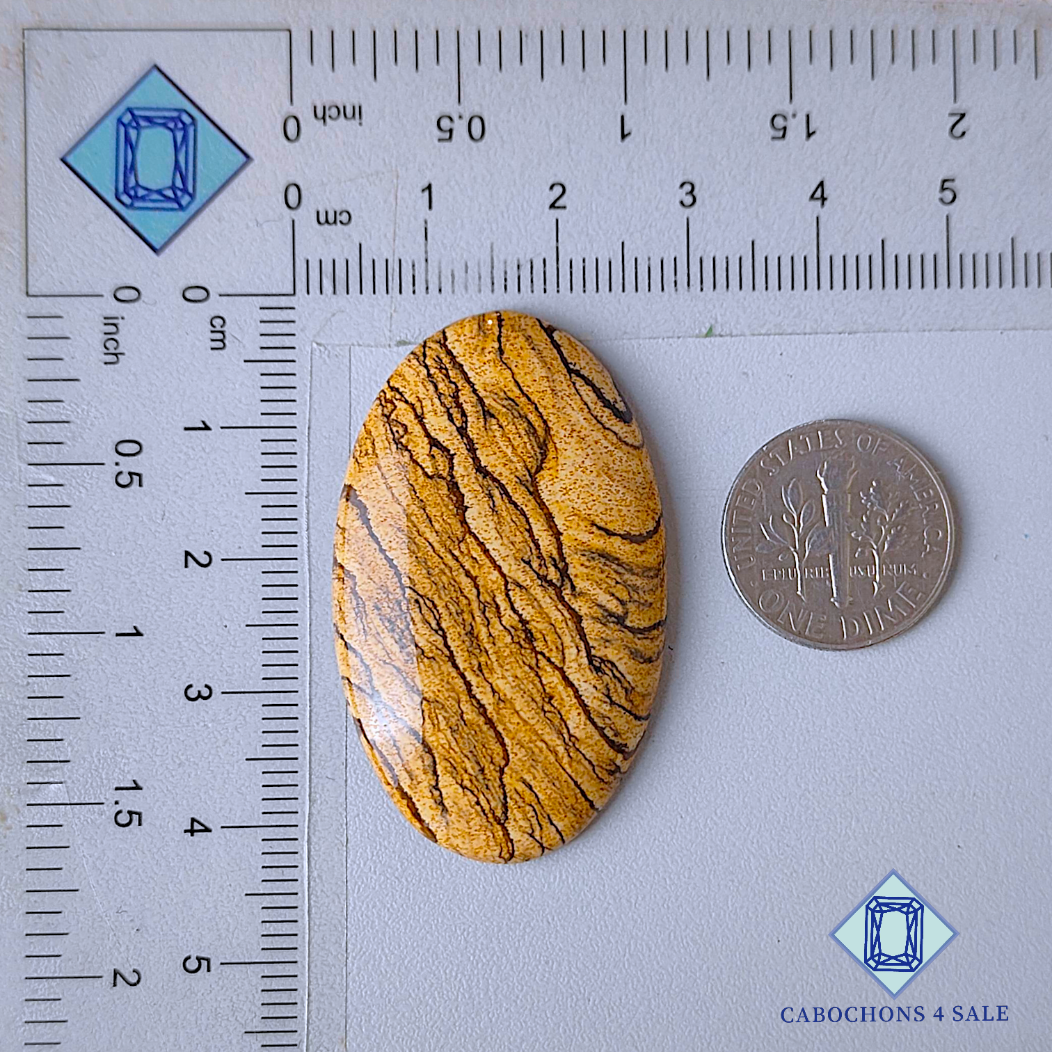 Deslice las imágenes para ver la piedra con la tabla de dimensiones. Esta es una gema de jaspe pictórico. El producto es una gema natural, ovalada y opaca. La gema de jaspe pictórico es de color marrón y mide 41 x 25 x 5 mm. La claridad de esta pieza es opaca. El producto está disponible exactamente como se muestra en la imagen: 1 pieza de cabujones ovalados de jaspe pictórico certificados por el precio indicado anteriormente.