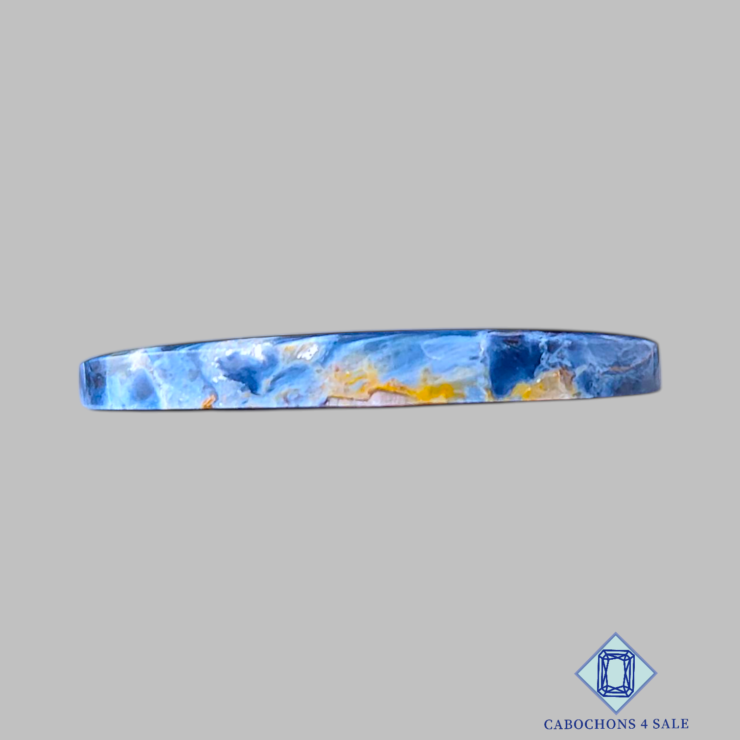 Deslice las imágenes para ver la piedra con la tabla de dimensiones. Esta es una gema de pietersita. El producto es natural, ovalado y opaco. La pietersita es azul y mide 27 x 11 x 3 mm. La claridad de esta pieza es opaca. El producto está disponible exactamente como se muestra en la imagen: 1 pieza de cabujones ovalados de pietersita certificados por el precio indicado anteriormente.