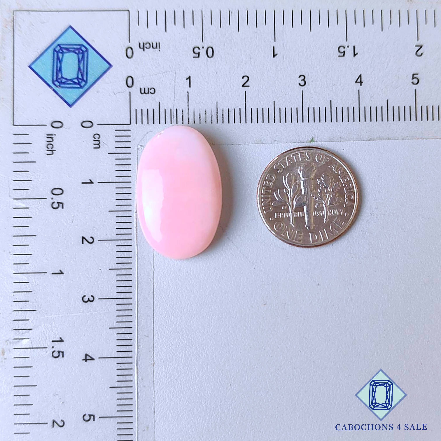 Deslice las imágenes para ver la piedra con la tabla de dimensiones. Esta es una gema de ópalo rosa. El producto es una gema natural, ovalada y opaca de color rosa con un tamaño de 22 x 14 x 6 mm. La claridad de esta pieza de ópalo rosa es opaca. El producto está disponible exactamente como se muestra en la imagen: 1 pieza de cabujones ovalados de ópalo rosa certificados por el precio indicado anteriormente.
