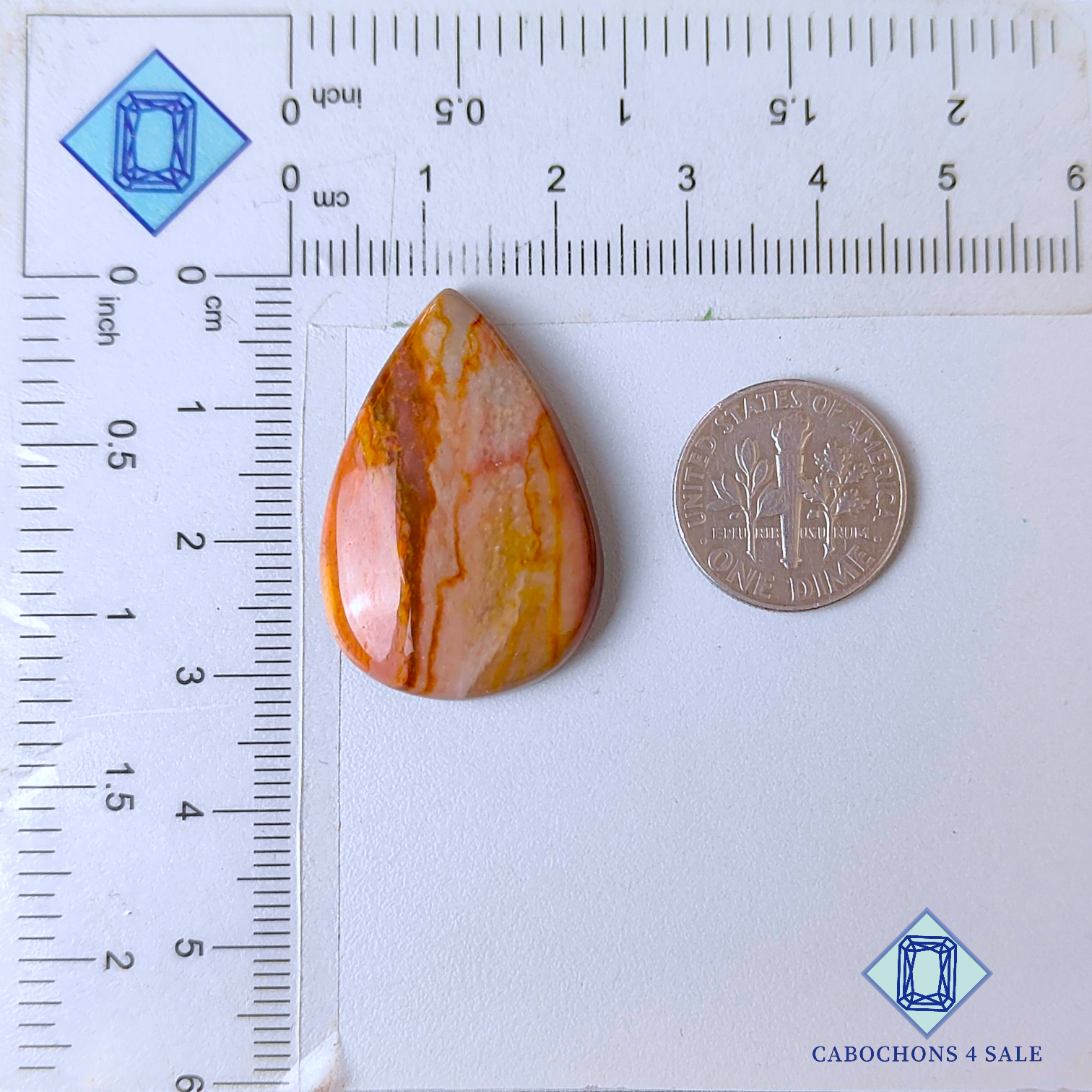 Deslice las imágenes para ver la piedra con la tabla de dimensiones. Esta es una gema de jaspe policromo. El producto es una gema natural de jaspe policromo en forma de pera, opaca. Es de color marrón y mide 30 x 21 x 6 mm. La claridad de esta pieza de jaspe policromo es opaca. El producto está disponible exactamente como se muestra en la imagen: 1 pieza de jaspe policromo en forma de pera con certificación al precio indicado anteriormente.