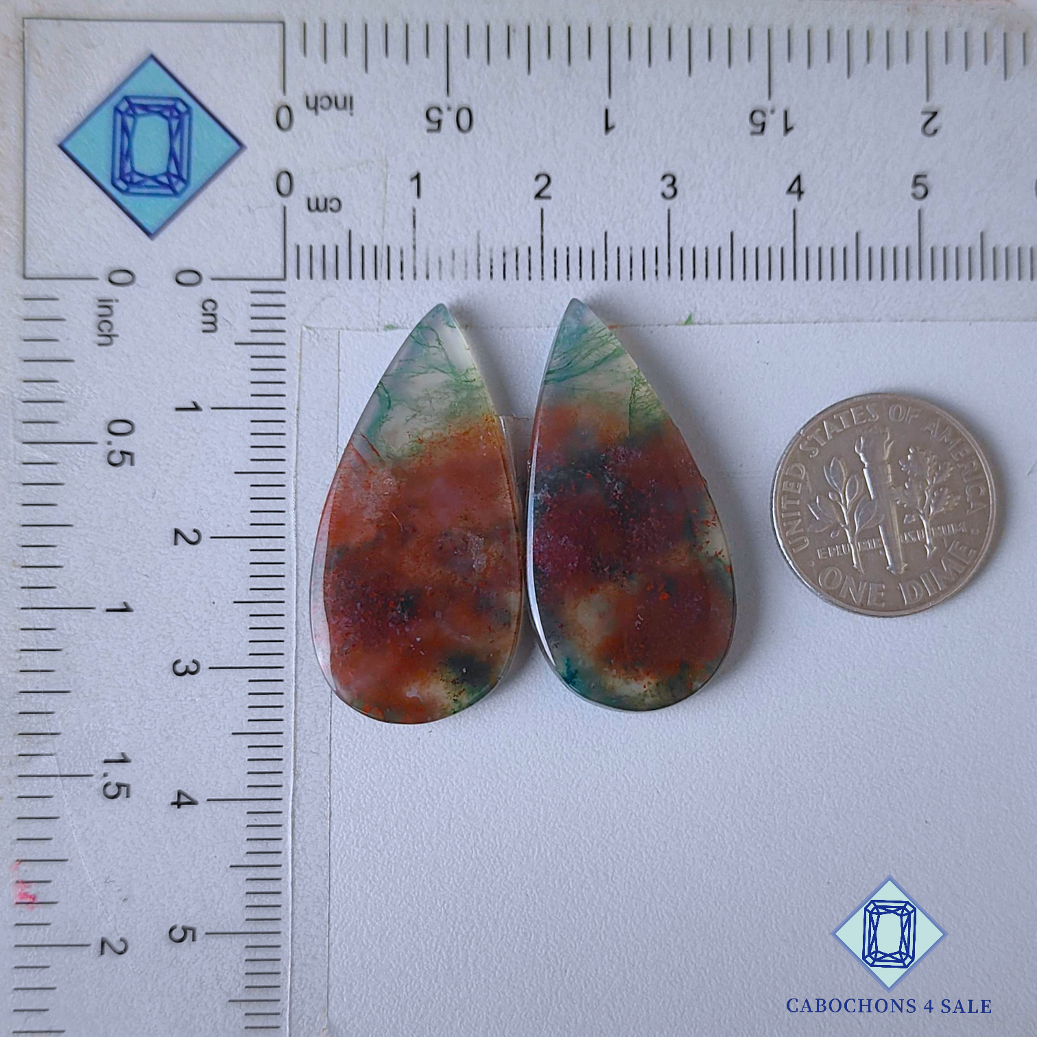 Deslice las imágenes para ver la piedra con la tabla de dimensiones. Esta es una gema de ágata musgosa roja. El producto es natural, translúcido y de forma pera. Esta gema de ágata musgosa roja es de color rojo y mide 32 x 16 x 4 mm. La claridad de esta pieza es translúcida. El producto está disponible exactamente como se muestra en la imagen: 1 par de ágatas musgosas rojas certificadas por el precio indicado anteriormente.