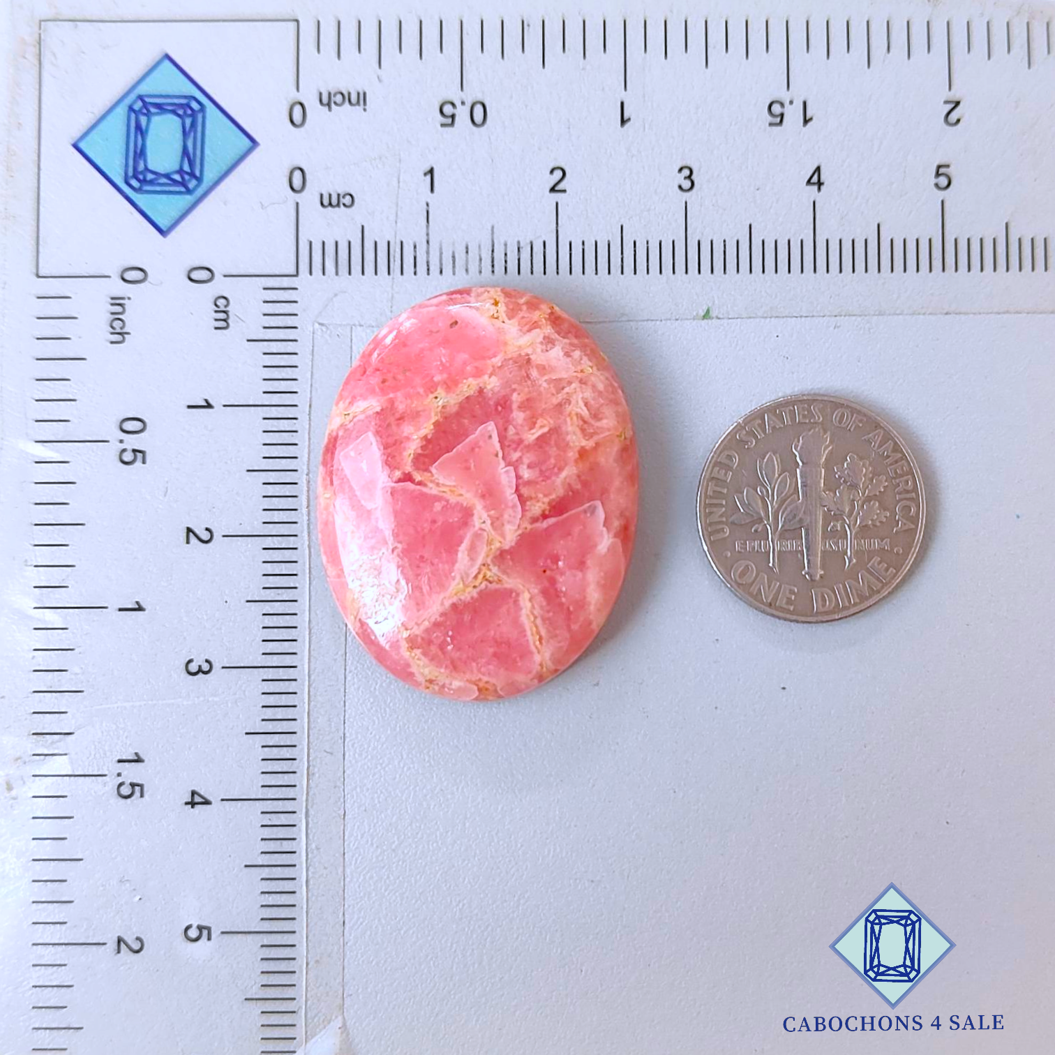 Deslice las imágenes para ver la piedra con la tabla de dimensiones. Esta es una gema de rodocrosita. El producto es natural, ovalado y opaco. La rodocrosita es de color rosa y mide 31 x 24 x 6 mm. La claridad de esta pieza de rodocrosita es opaca. El producto está disponible exactamente como se muestra en la imagen: 1 pieza de cabujones ovalados de rodocrosita certificados por el precio indicado anteriormente.