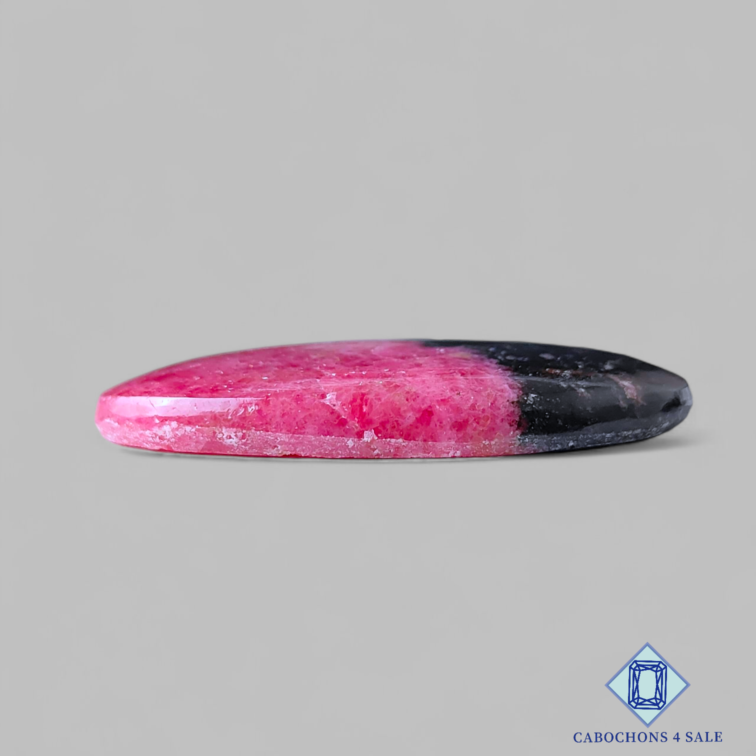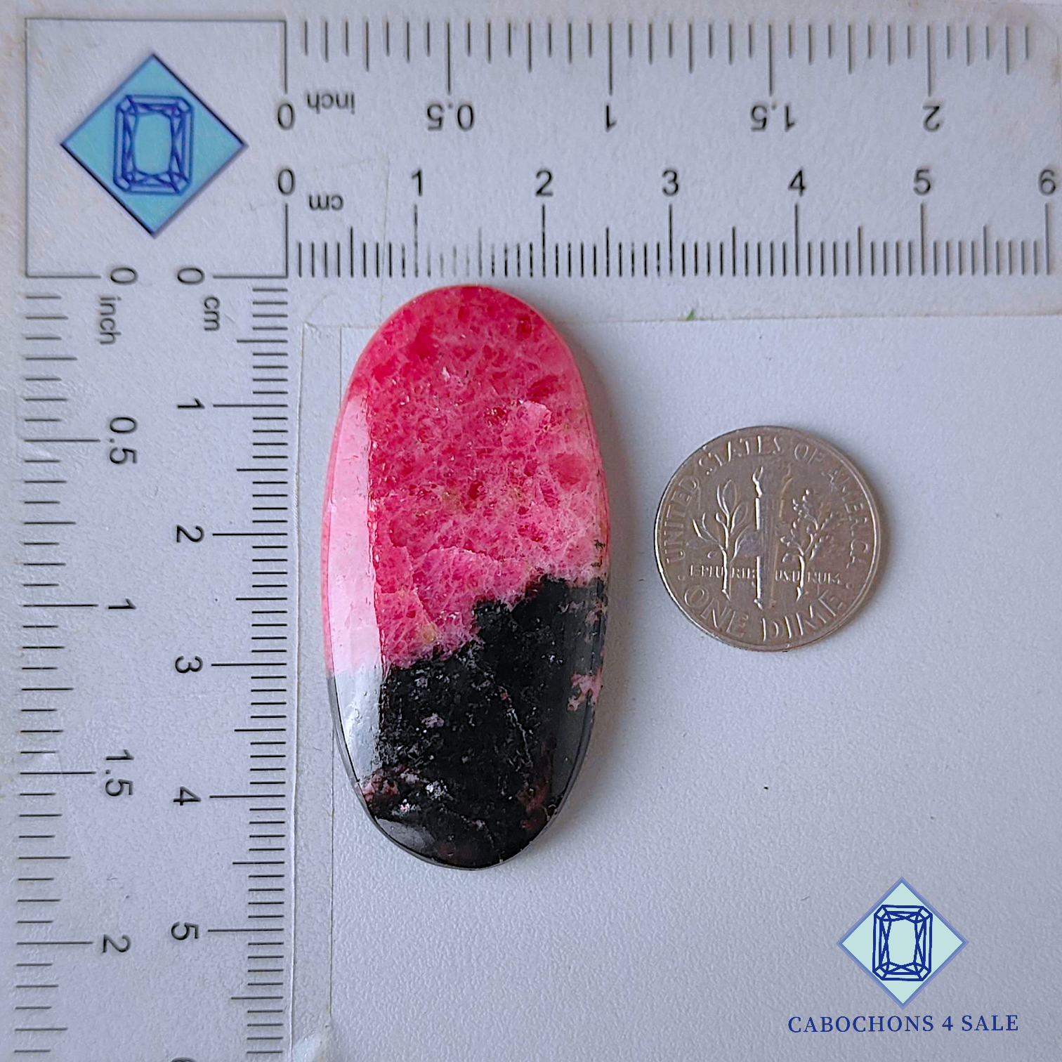 Deslice las imágenes para ver la piedra con la tabla de dimensiones. Esta es una gema de rodonita. El producto es natural, ovalado y opaco. La rodonita es de color rosa y mide 45 x 22 x 6 mm. La claridad de esta pieza de rodonita es opaca. El producto está disponible exactamente como se muestra en la imagen: 1 pieza de cabujones ovalados de rodonita certificados por el precio indicado anteriormente.