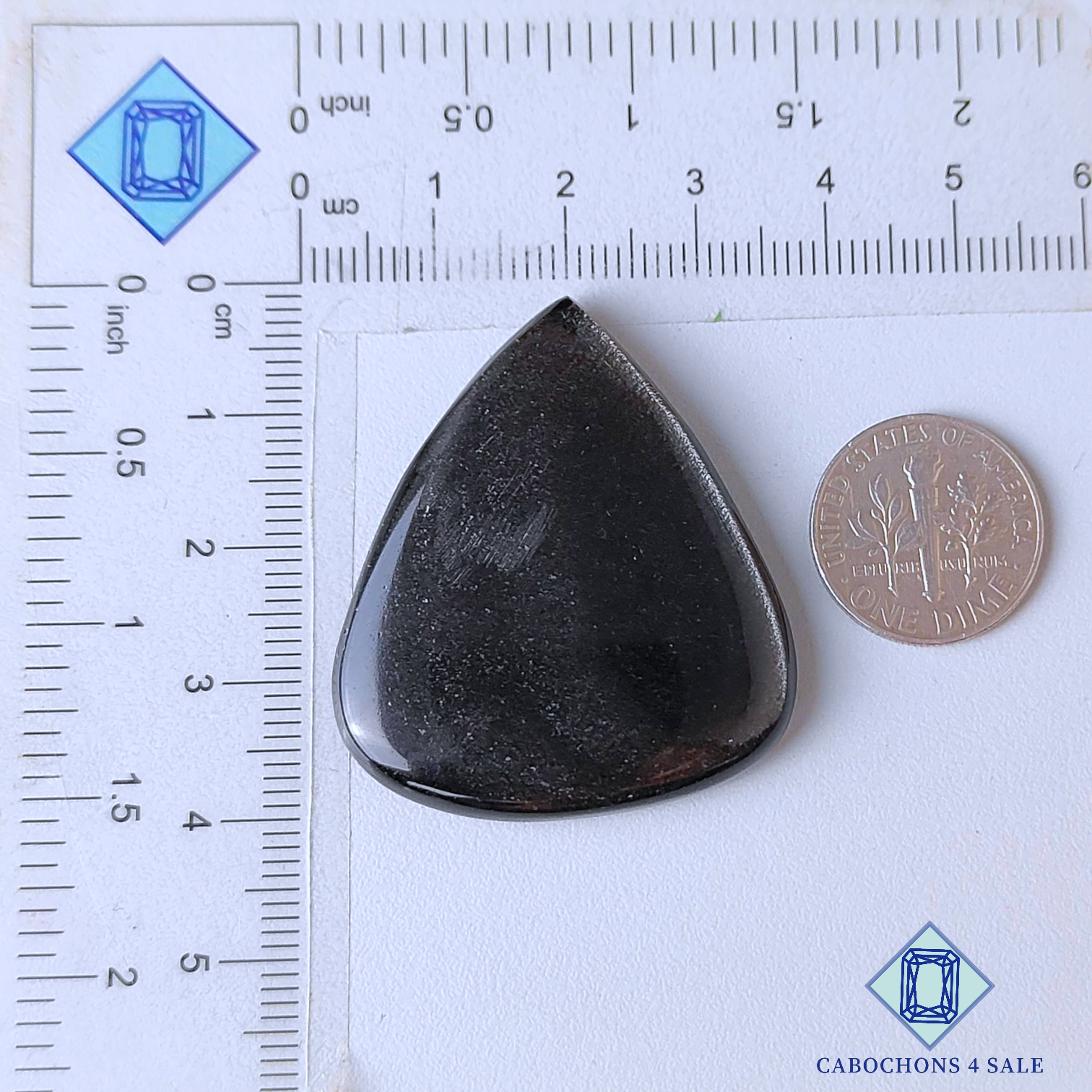 Deslice las imágenes para ver la piedra con la tabla de dimensiones. Esta es una gema de obsidiana plateada. El producto es natural, de forma pera y opaco. La obsidiana plateada es de color gris y mide 39 x 34 x 5 mm. La claridad de esta pieza de obsidiana plateada es opaca. El producto está disponible exactamente como se muestra en la imagen: 1 pieza de cabujones de obsidiana plateada de forma pera certificados por el precio indicado anteriormente.