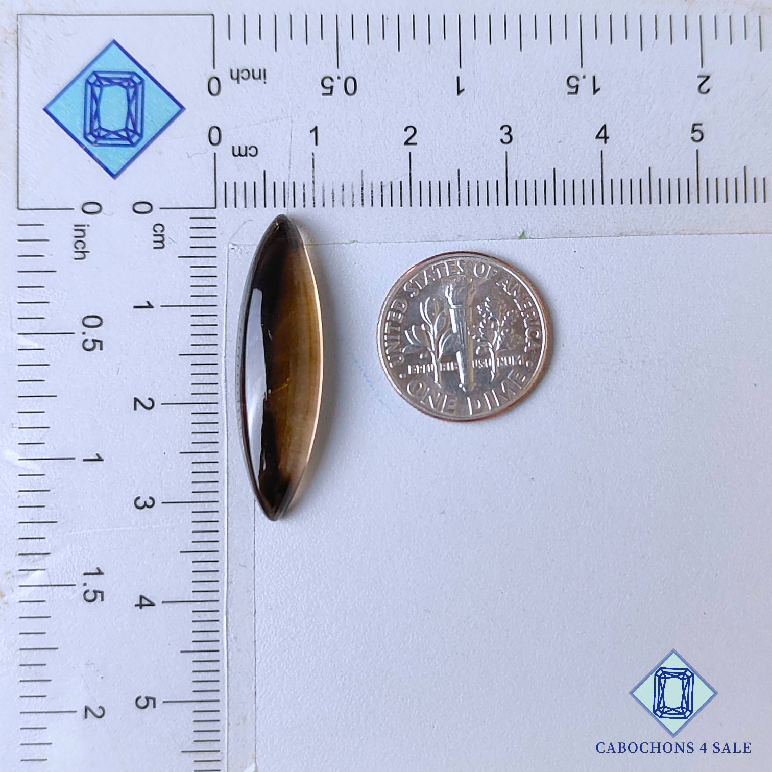 Deslice las imágenes para ver la piedra con la tabla de dimensiones. Esta gema de cuarzo ahumado es natural, marquesa y translúcida. Su color ahumado es de 31 x 8 x 5 mm. La claridad de esta pieza de cuarzo ahumado es translúcida. El producto está disponible exactamente como se muestra en la imagen: 1 pieza de cabujones marquesa de cuarzo ahumado certificados por el precio indicado anteriormente.