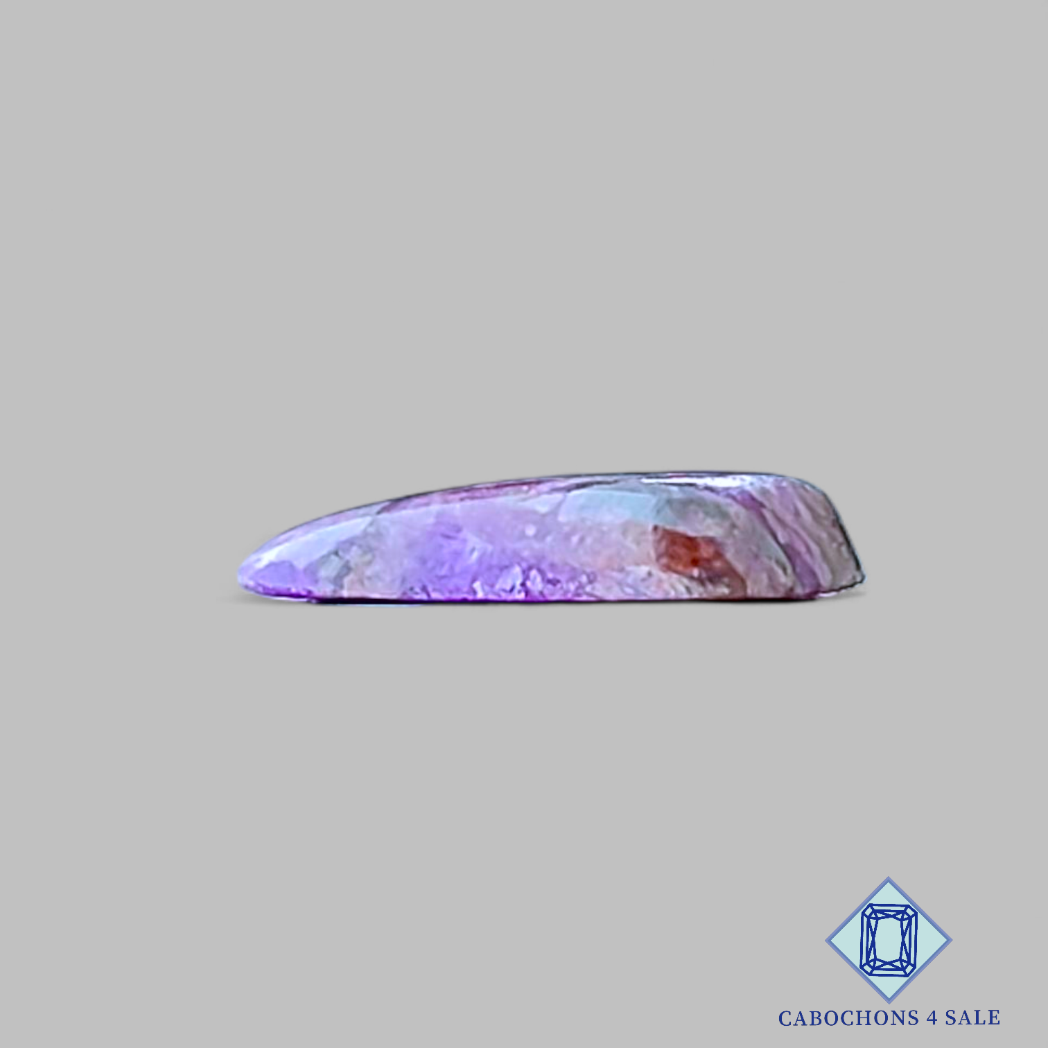 Deslice las imágenes para ver la piedra con la tabla de dimensiones. Esta es una gema de sugilita. El producto es natural, de fantasía y opaco. La gema de sugilita es de color púrpura y mide 17 x 11 x 3 mm. La claridad de esta pieza de sugilita es opaca. El producto está disponible exactamente como se muestra en la imagen: 1 pieza de cabujones de fantasía de sugilita certificados por el precio indicado anteriormente.