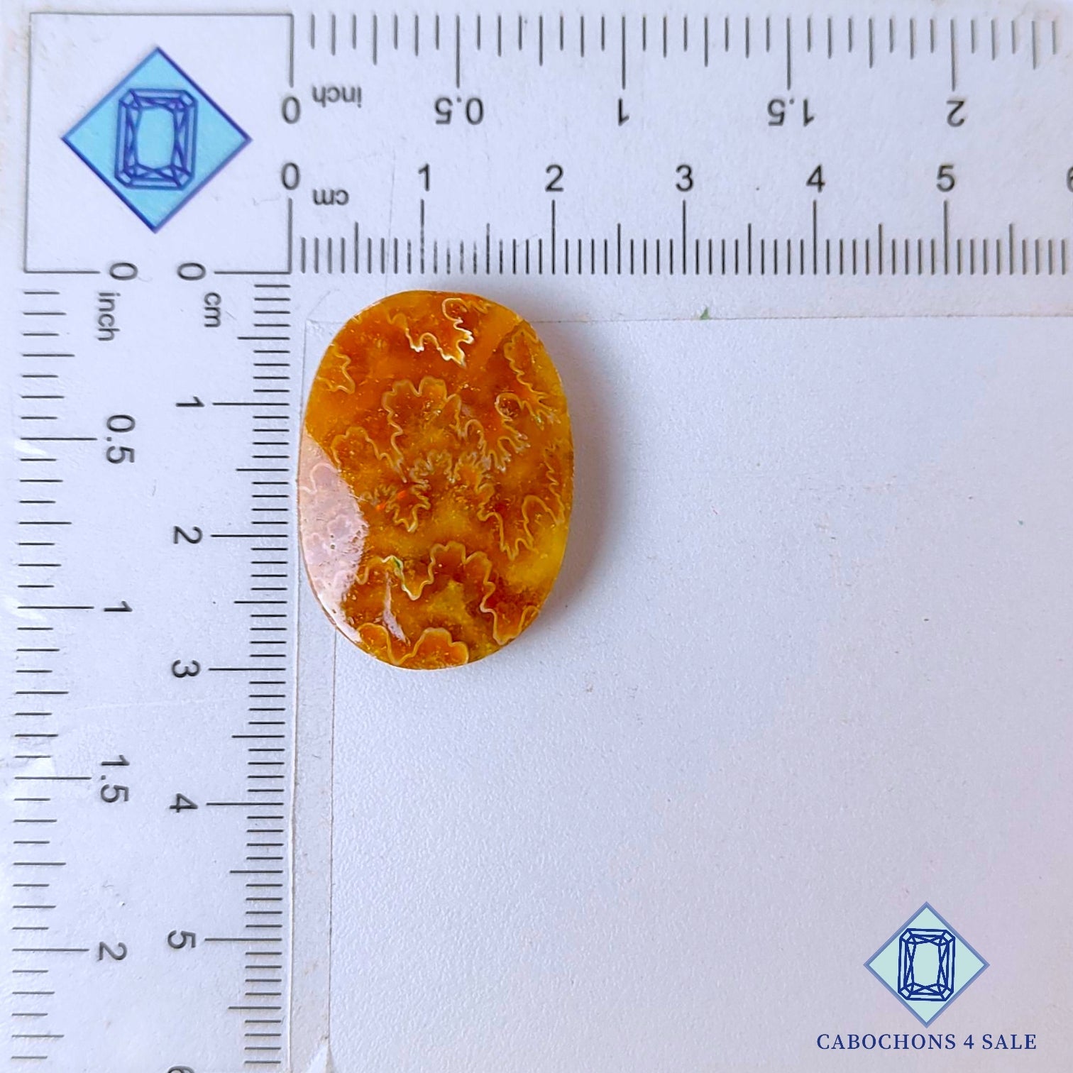 Deslice las imágenes para ver la piedra con la tabla de dimensiones. Esta es una gema de amonita suturada. El producto es natural, ovalado y opaco. La gema de amonita suturada es marrón y mide 28 x 20 x 5 mm. La claridad de esta pieza es opaca. El producto está disponible exactamente como se muestra en la imagen: 1 pieza de cabujones ovalados de amonita suturada certificada por el precio indicado anteriormente.
