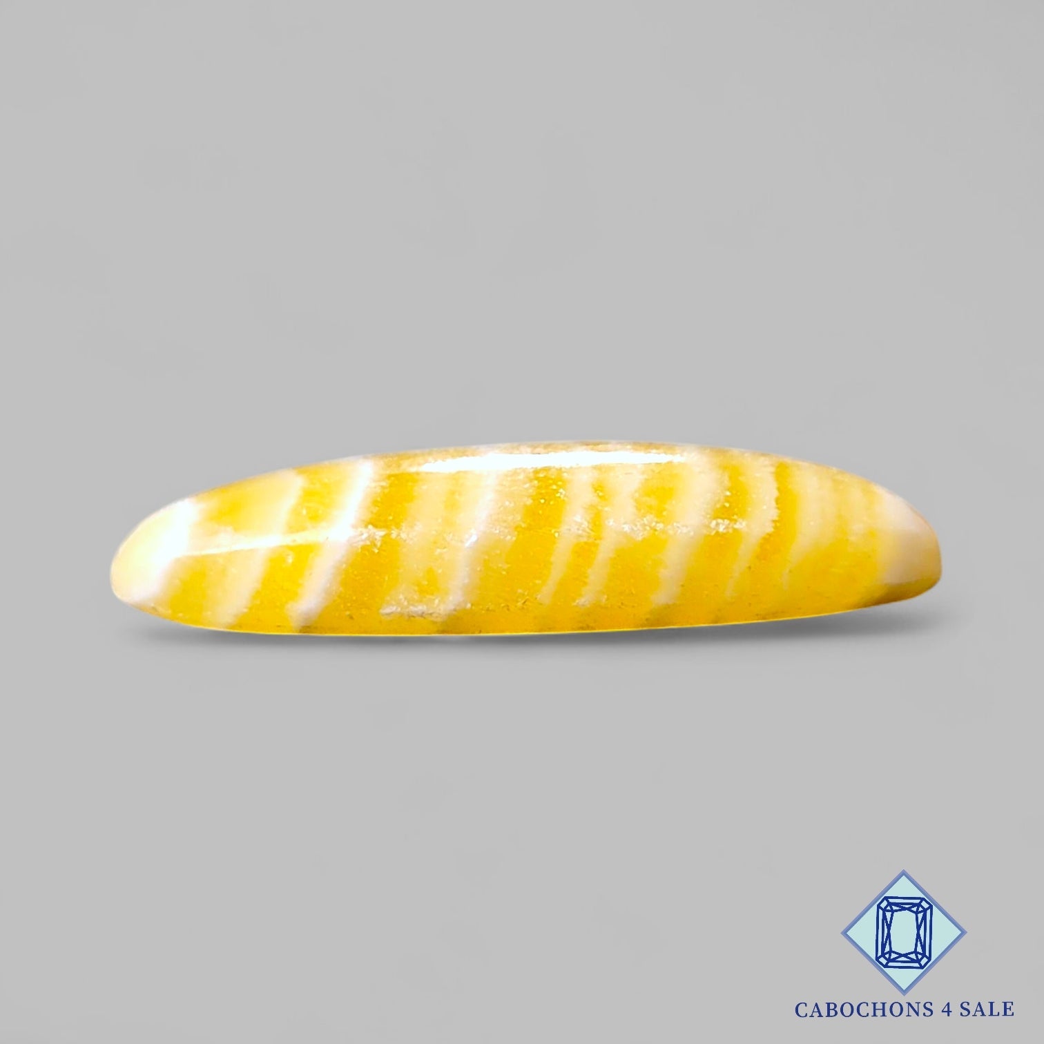 Deslice las imágenes para ver la piedra con la tabla de dimensiones. Esta es una gema de calcita amarilla. El producto es una gema natural, ovalada y translúcida de color amarillo con un tamaño de 39 x 16 x 7 mm. La claridad de esta pieza de calcita amarilla es translúcida. El producto está disponible exactamente como se muestra en la imagen: 1 pieza de cabujones ovalados de calcita amarilla certificados por el precio indicado anteriormente.