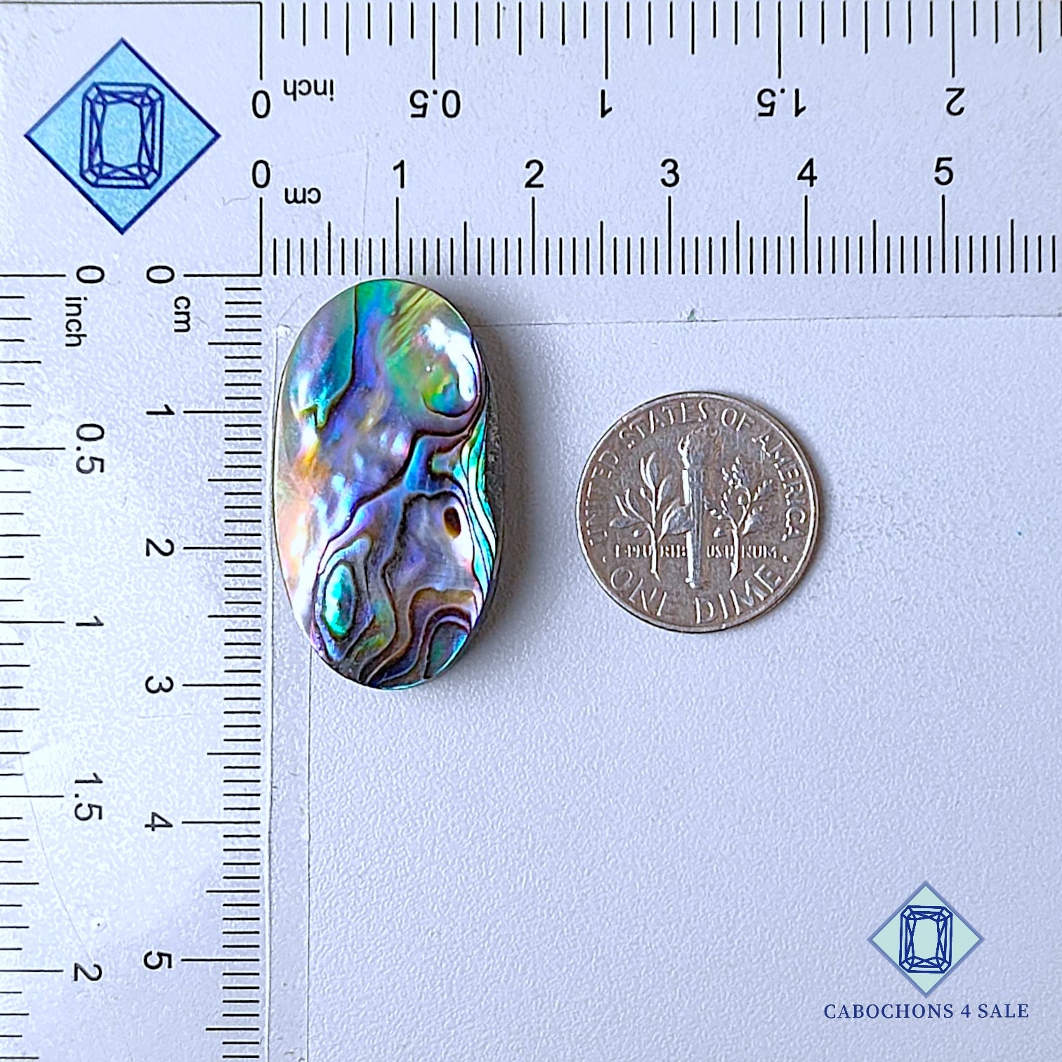 Swipe images to see stone with Dimension chart. This is a Abalone shell gemstone. The Product is a natural, Oval, Opaque. Abalone shell gemstone in Blue color with the size of 30*16*6mm. Clarity of this Abalone shell Piece is Opaque. The Product is available exactly same shown in the picture: 1 piece Oval Cabochons Abalone shell certified for the price listed above.