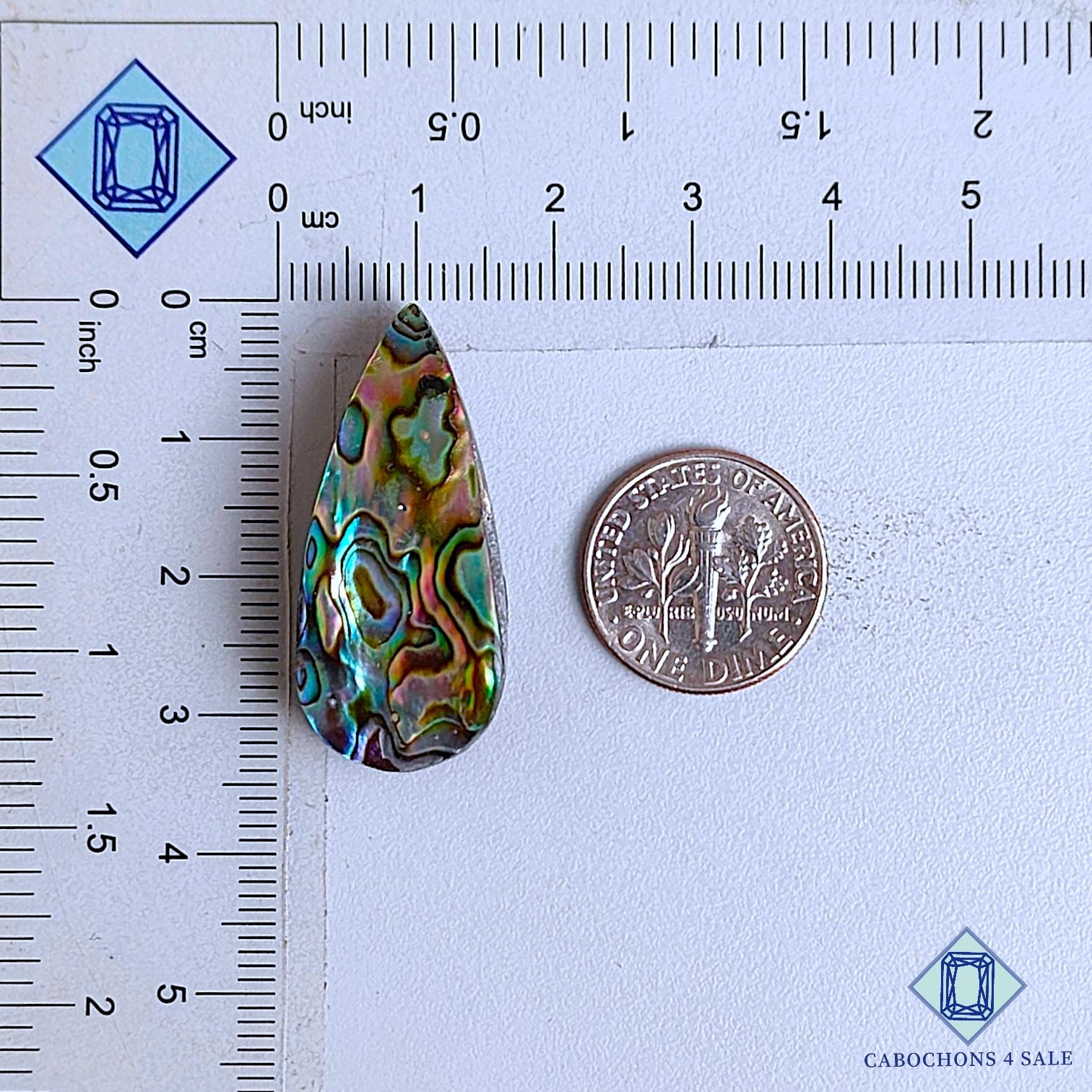 Swipe images to see stone with Dimension chart. This is a Abalone Shell gemstone. The Product is a natural, Pear, Opaque. Abalone Shell gemstone in Green color with the size of 32*15*7mm. Clarity of this Abalone Shell Piece is Opaque. The Product is available exactly same shown in the picture: 1 piece Pear Cabochons Abalone Shell certified for the price listed above.