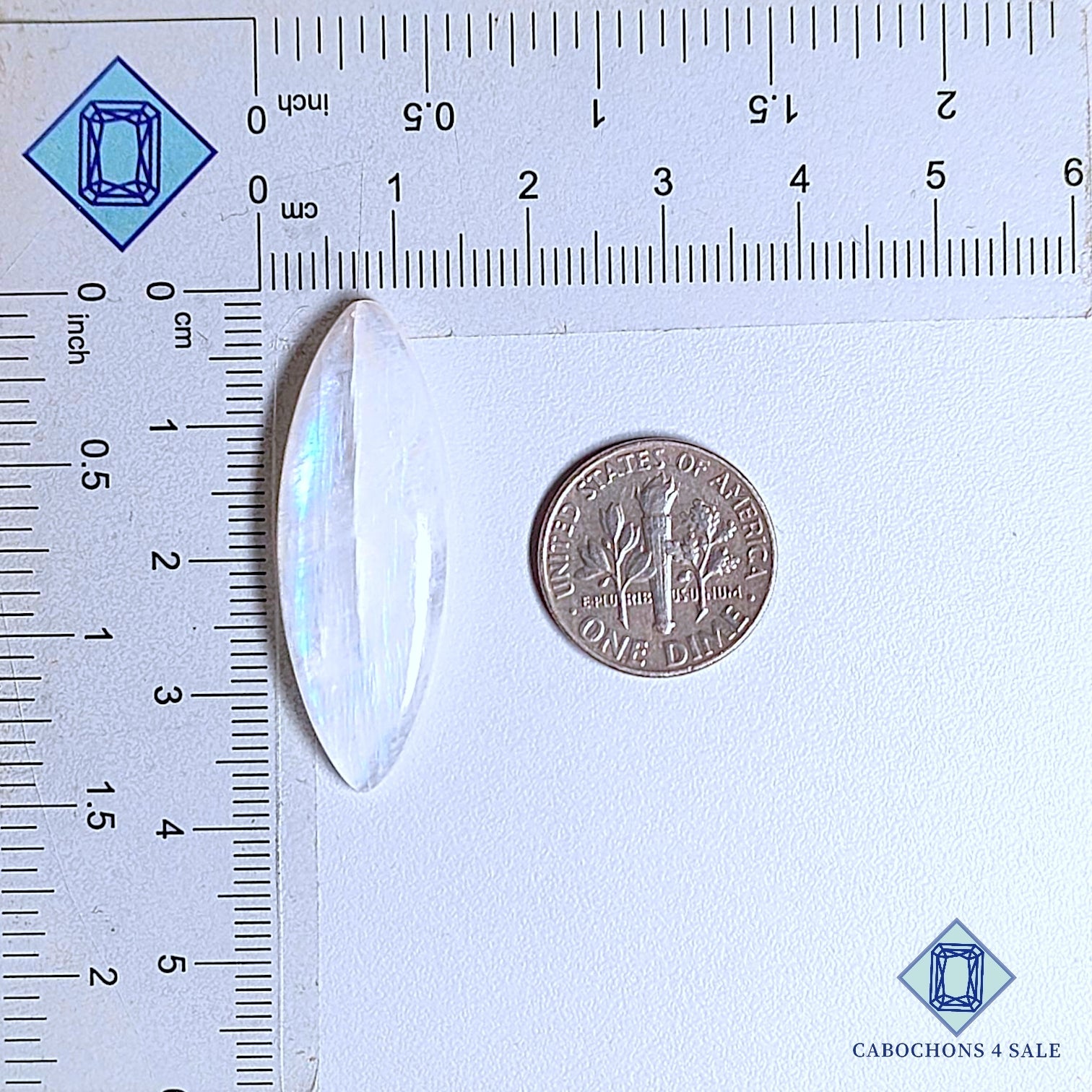 Swipe images to see stone with Dimension chart. This is a African Moonstone gemstone. The Product is a natural, Marquise, Translucent. African Moonstone gemstone in Blue color with the size of 36*13*5mm. Clarity of this African Moonstone Piece is Translucent. The Product is available exactly same shown in the picture: 1 piece Marquise Cabochons African Moonstone certified for the price listed above.