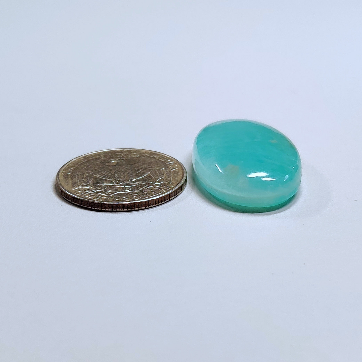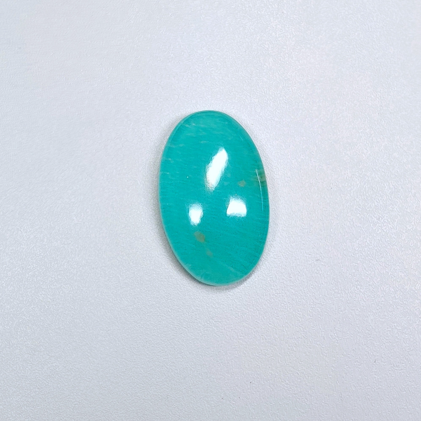 This is a Amazonite . The product is a natural Oval Cabochons. Amazonite in Sky blue color with the approx. size of 30*20*8mm.Clarity of this Amazonite Piece is Opaque. The product is sold as pictured: 1pc Oval Cabochons Amazonite for the price listed.
