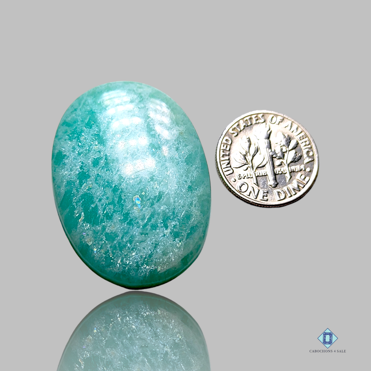 This is a Amazonite . The product is a natural Oval Cabochons. Amazonite in Sky blue color with the approx. size of 35 to 40mm.Clarity of this Amazonite Piece is Opaque. The product is sold as pictured: 1pc Oval Cabochons Amazonite for the price listed.