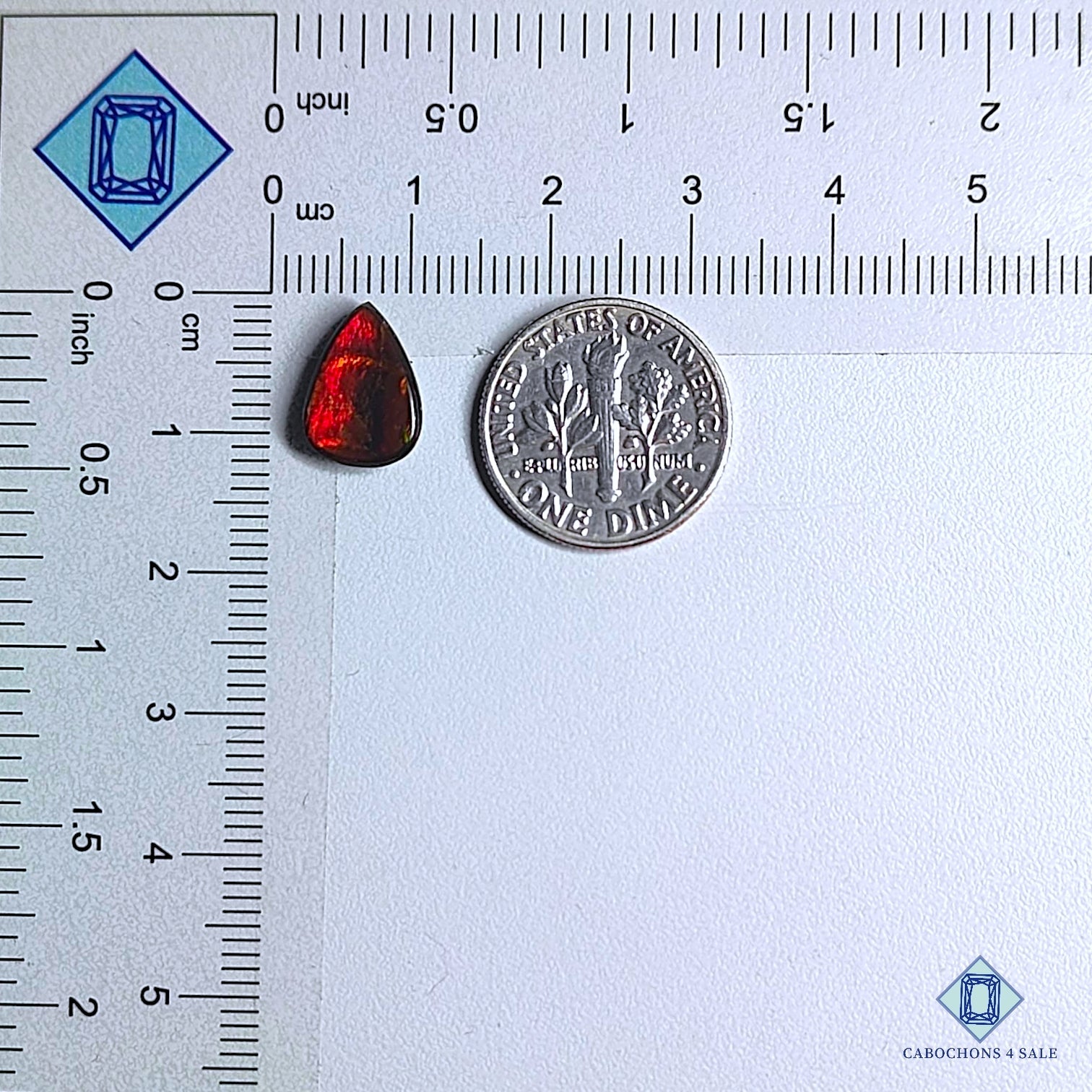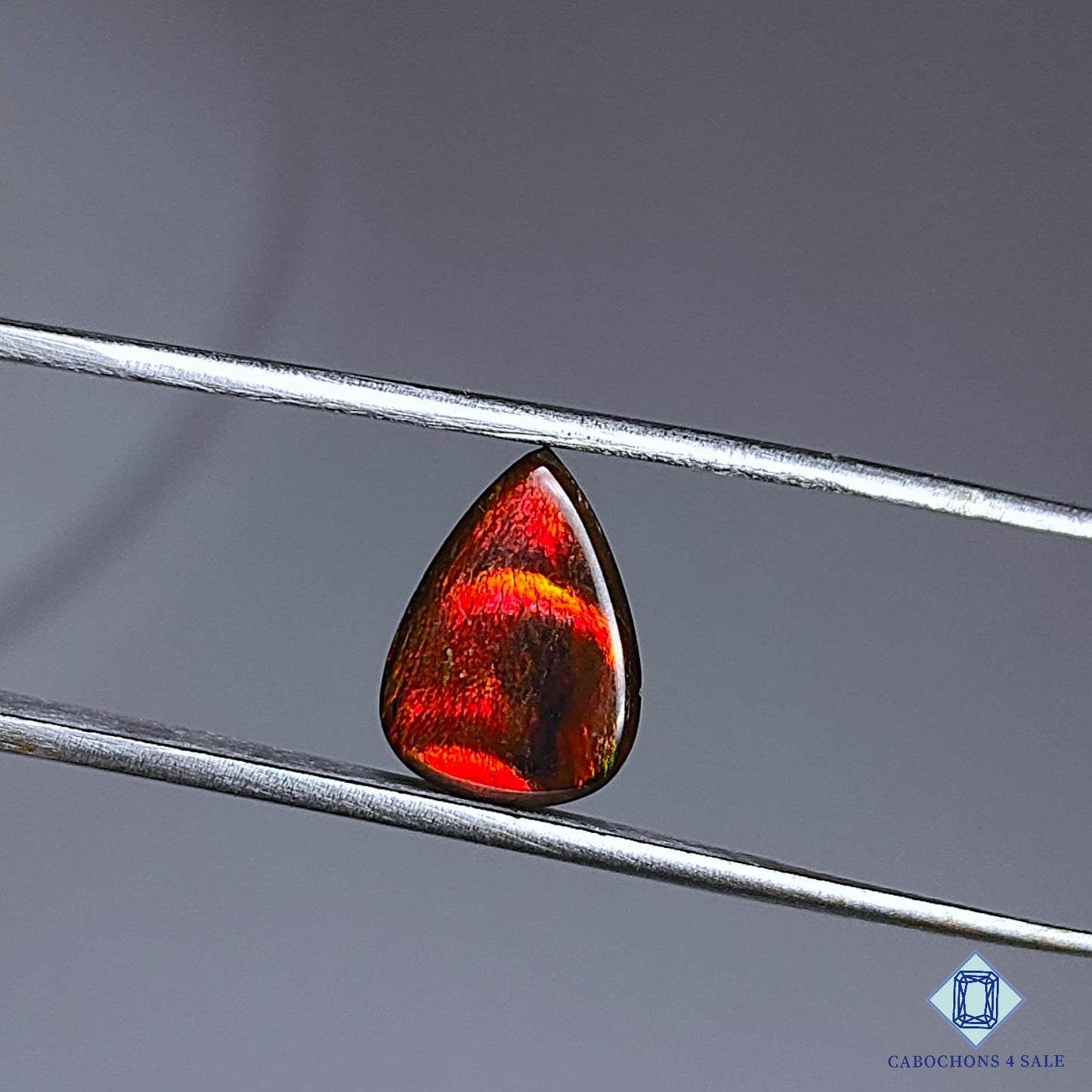 Swipe images to see stone with Dimension chart. This is a Ammolite gemstone. The Product is a natural , Pear, Opaque. Ammolite gemstone in Red color with the size of 12*8*3mm. Clarity of this Ammolite Piece is Opaque. The Product is available exactly same shown in the picture: 1 piece Pear Cabochons Ammolite certified for the price listed above.