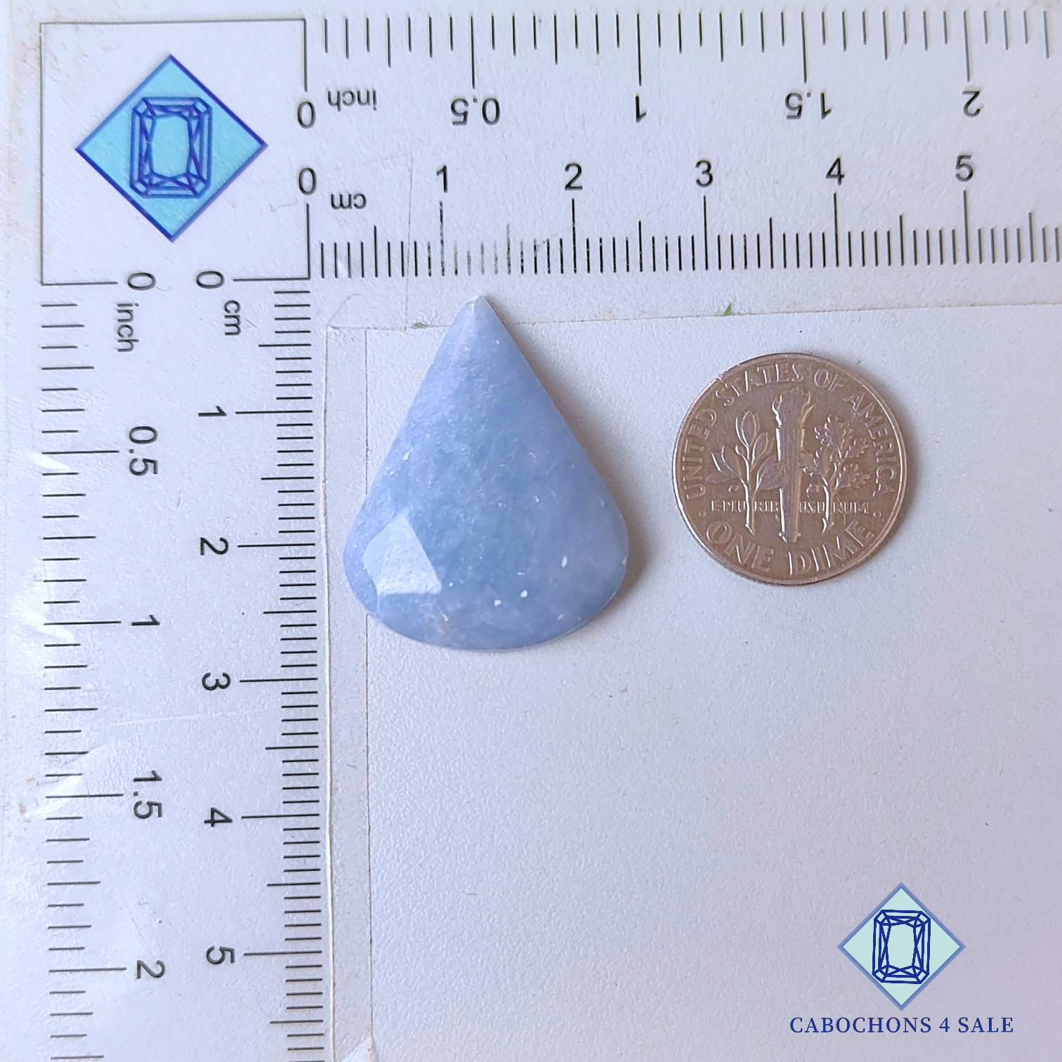 Swipe images to see stone with Dimension chart. This is a Angelite gemstone. The Product is a natural , Pear, Translucent. Angelite gemstone in Blue color with the size of 26*21*5mm. Clarity of this Angelite Piece is Translucent. The Product is available exactly same shown in the picture: 1 piece Pear Rose Cut Angelite certified for the price listed above.