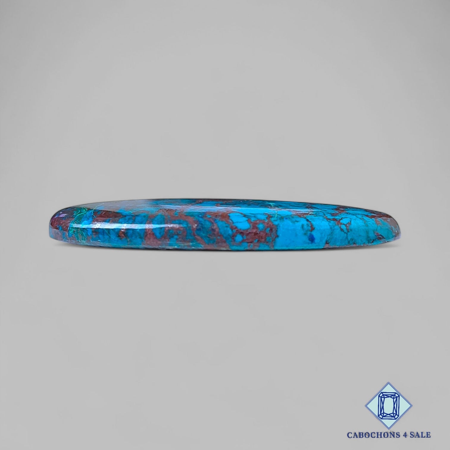 Swipe images to see stone with Dimension chart. This is a Arizona Shattuckite gemstone. The Product is a natural , Oval, Opaque. Arizona Shattuckite gemstone in Blue color with the size of 52*27*6mm. Clarity of this Arizona Shattuckite Piece is Opaque. The Product is available exactly same shown in the picture: 1 piece Oval Cabochons Arizona Shattuckite certified for the price listed above.
