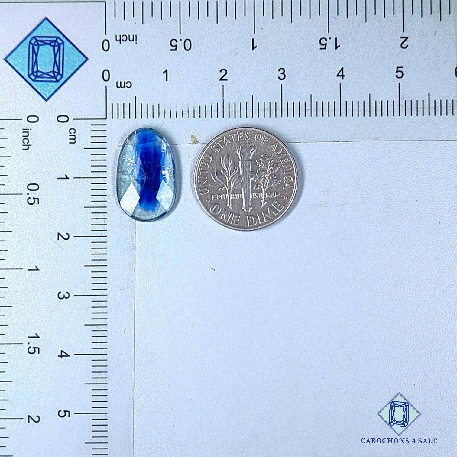 Swipe images to see stone with Dimension chart. This is a Bi Color Blue Kyanite gemstone. The Product is a natural , Oval, Translucent. Bi Color Blue Kyanite gemstone in Blue color with the size of 16*10*3mm. Clarity of this Bi Color Blue Kyanite Piece is Translucent. The Product is available exactly same shown in the picture: 1 piece Oval Rose Cut Bi Color Blue Kyanite certified for the price listed above.