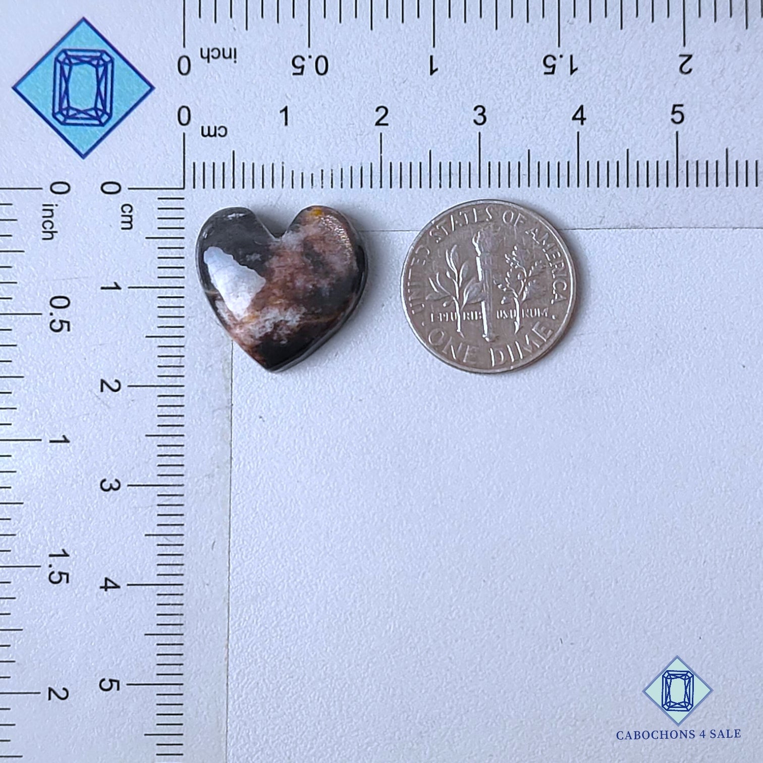 Swipe images to see stone with Dimension chart. This is a Black Tanzanian Sunstone gemstone. The Product is a natural , Heart, Translucent. Black Tanzanian Sunstone gemstone in Black color with the size of 17*17*5mm. Clarity of this Black Tanzanian Sunstone Piece is Translucent. The Product is available exactly same shown in the picture: 1 piece Heart Carvings Black Tanzanian Sunstone certified for the price listed above.