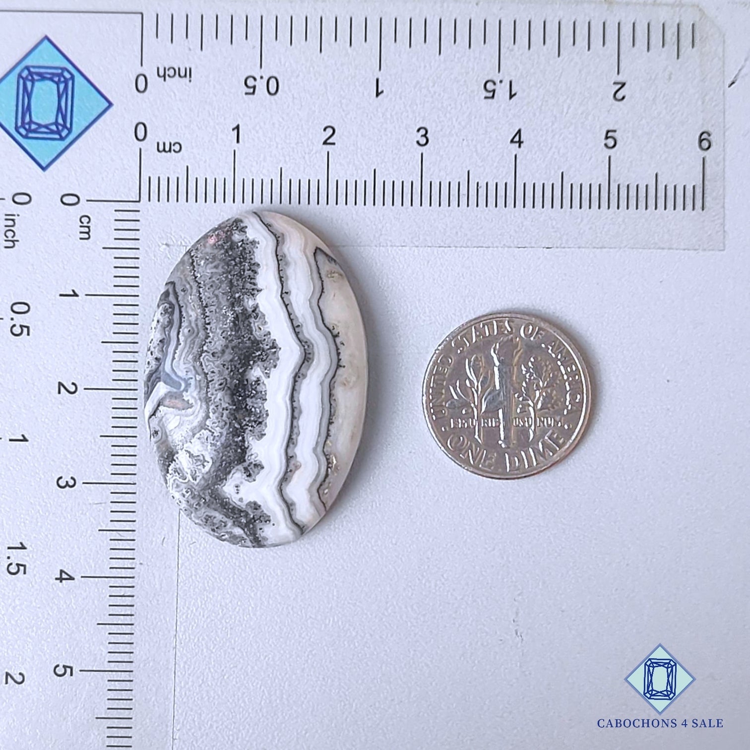 Swipe images to see stone with Dimension chart. This is a Black Zebra Onyx gemstone. The Product is a natural , Oval, Opaque. Black Zebra Onyx gemstone in Black color with the  size of 35*23*7mm. Clarity of this Black Zebra Onyx Piece is  Opaque. The Product is available exactly same shown in the picture: 1 piece Oval Cabochons Black Zebra Onyx certified for the price listed above.
