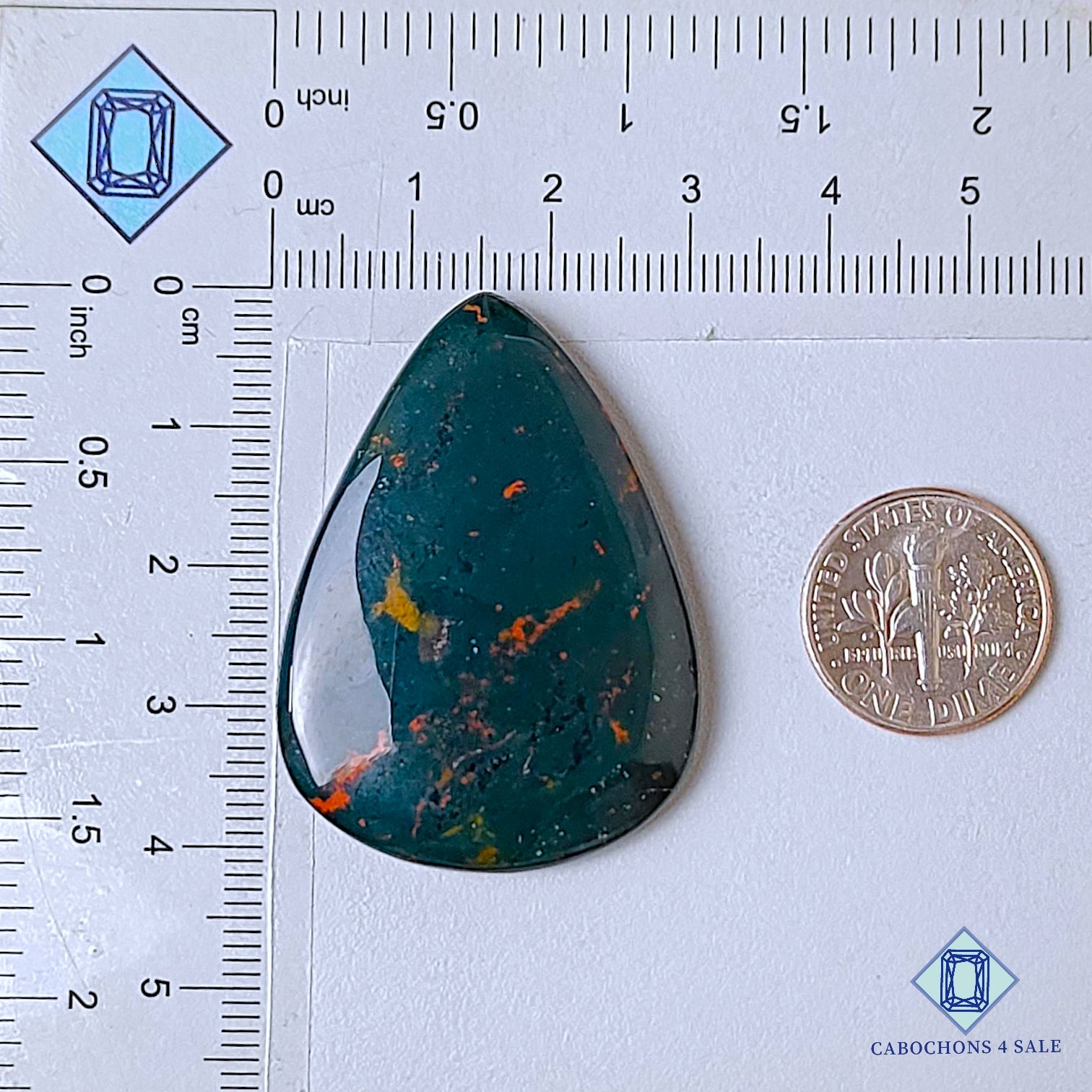 Swipe images to see stone with Dimension chart. This is a Blood Stone gemstone. The Product is a natural, Pear, Opaque. Blood Stone gemstone in Green color with the size of 41*30*5mm. Clarity of this Blood Stone Piece is Opaque. The Product is available exactly same shown in the picture: 1 piece Pear Cabochons Blood Stone certified for the price listed above.